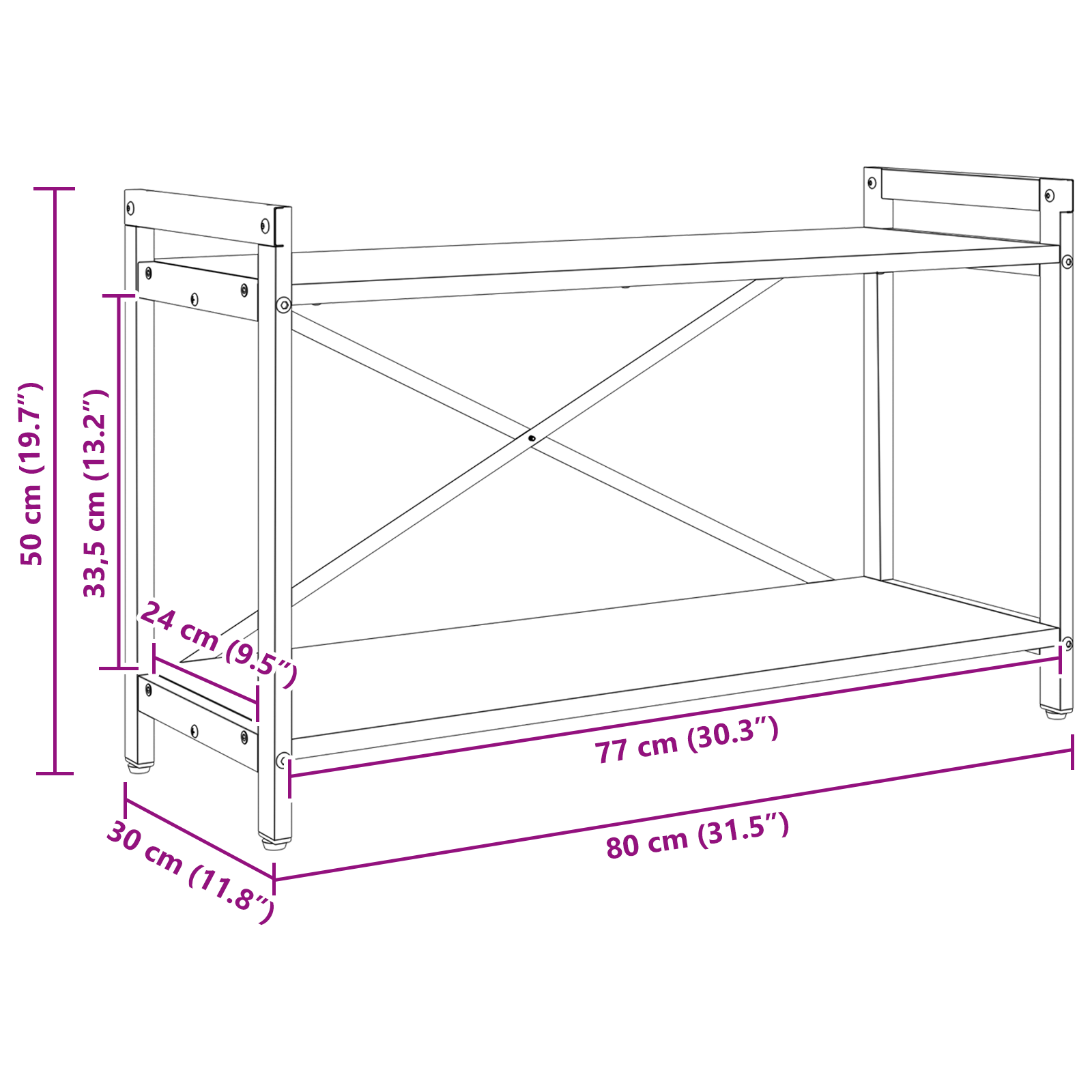 • Celkové rozměry: 80 x 30 x 50 cm (D x Š x V)