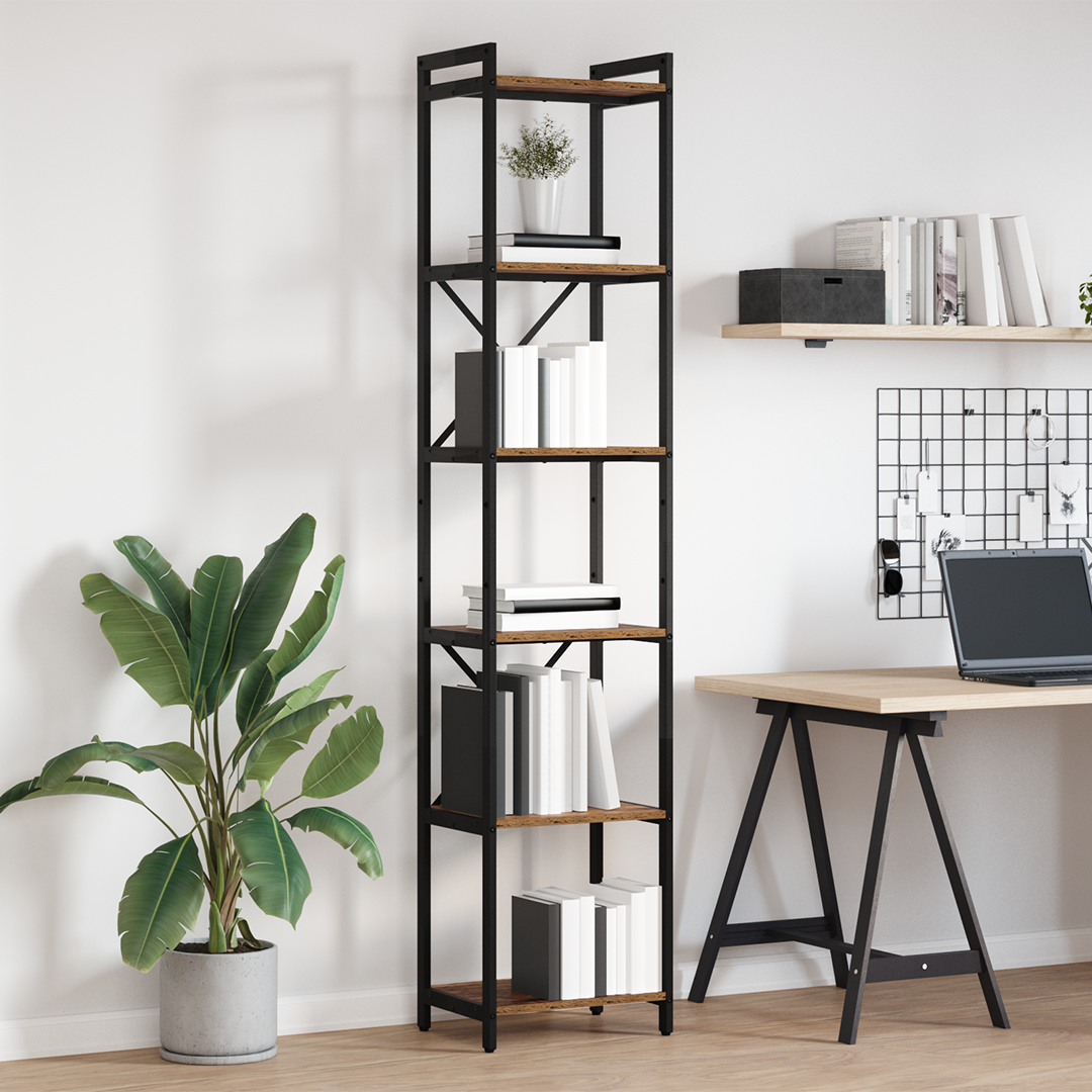 • Navrženo pro interiér: Tato knihovna je určena pro vnitřní prostory a skvěle se hodí do pracovny, obývacího pokoje nebo jakékoliv jiné místnosti, kde potřebujete stylové uspořádání. Její industriální vibe se hladce integruje do moderních interiérů a obohacuje je o městský šarm.