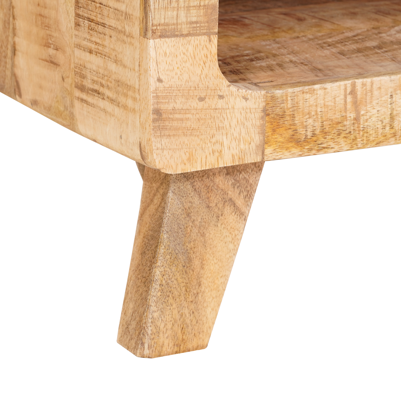 Tento rustikální konferenční stolek spojuje jednoduchost a funkčnost s moderním stylem. Je navržený tak, aby ladil s obývacími pokoji nebo ložnicemi, jeho čisté linie a minimální zdobení se skvěle hodí k různým interiérům. Rozměry 40 x 40 x 49 cm z něj dělají kompaktní, ale užitečný kousek ideální pro lampičky, knihy nebo dekorace.
