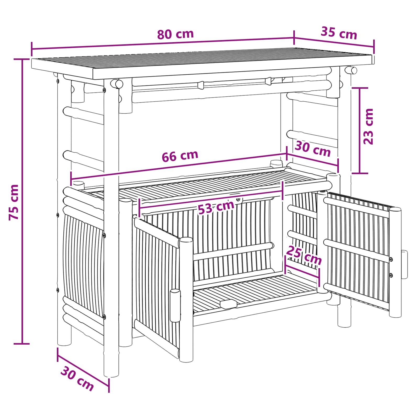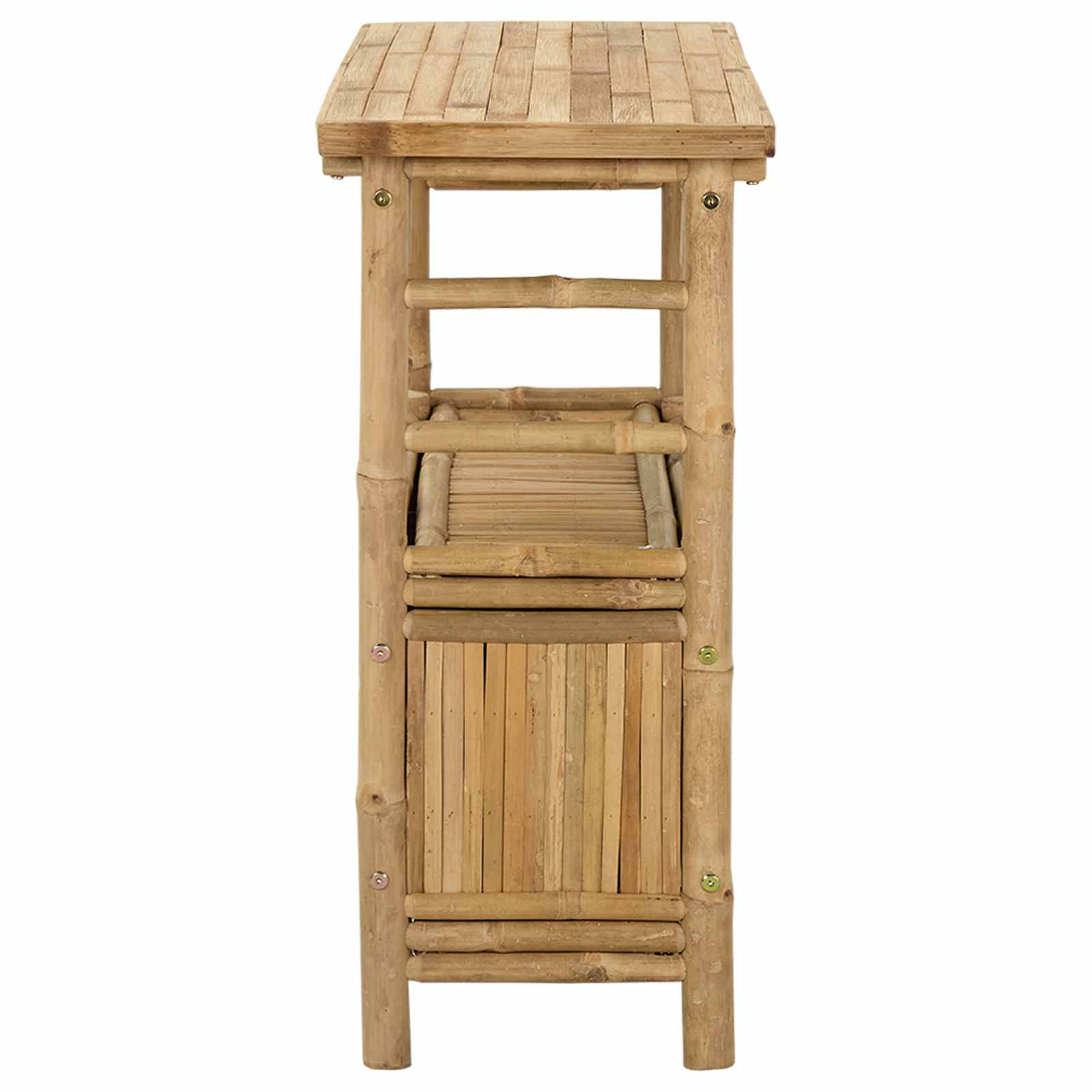 Tento moderní konzolový stolek z kvalitního bambusu se perfektně hodí do jakéhokoli prostoru. Má stylový a minimalistický design, jehož přírodní povrch vnáší teplo a jednoduchost do vstupů, obývacích pokojů nebo chodeb. Slouží jako místo na vystavení dekorací nebo úschovu osobních věcí, což z něj dělá skvělý kousek pro efektivní organizaci.