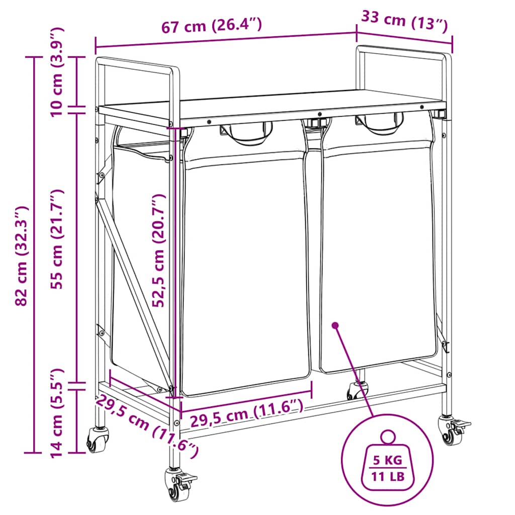 Koš na prádlo poskytuje prostorné a pohodlné řešení pro ukládání prádla, je vybaven výsuvnými sáčky a kolečky, díky nimž je uspořádání a přeprava prádla snadná.