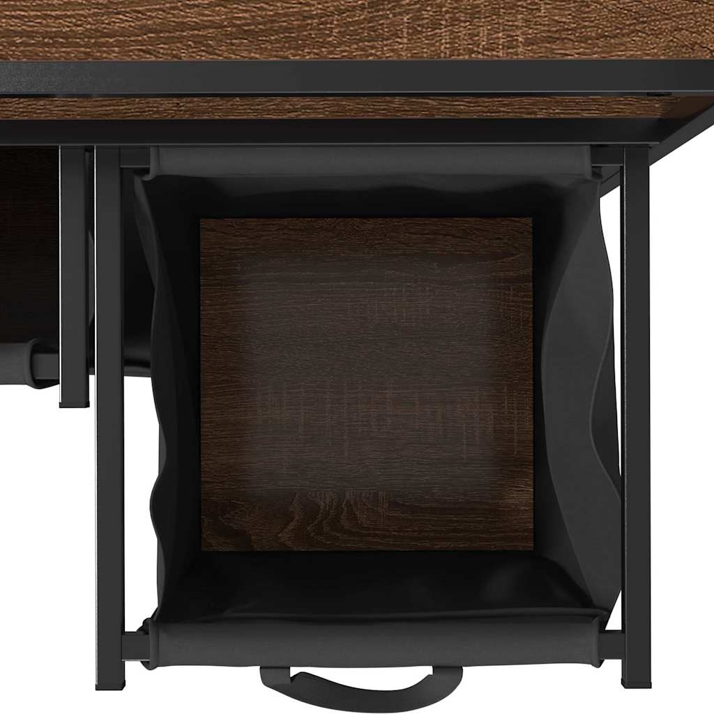 Koš na prádlo se 2 přihrádkami a policemi hnědý dub