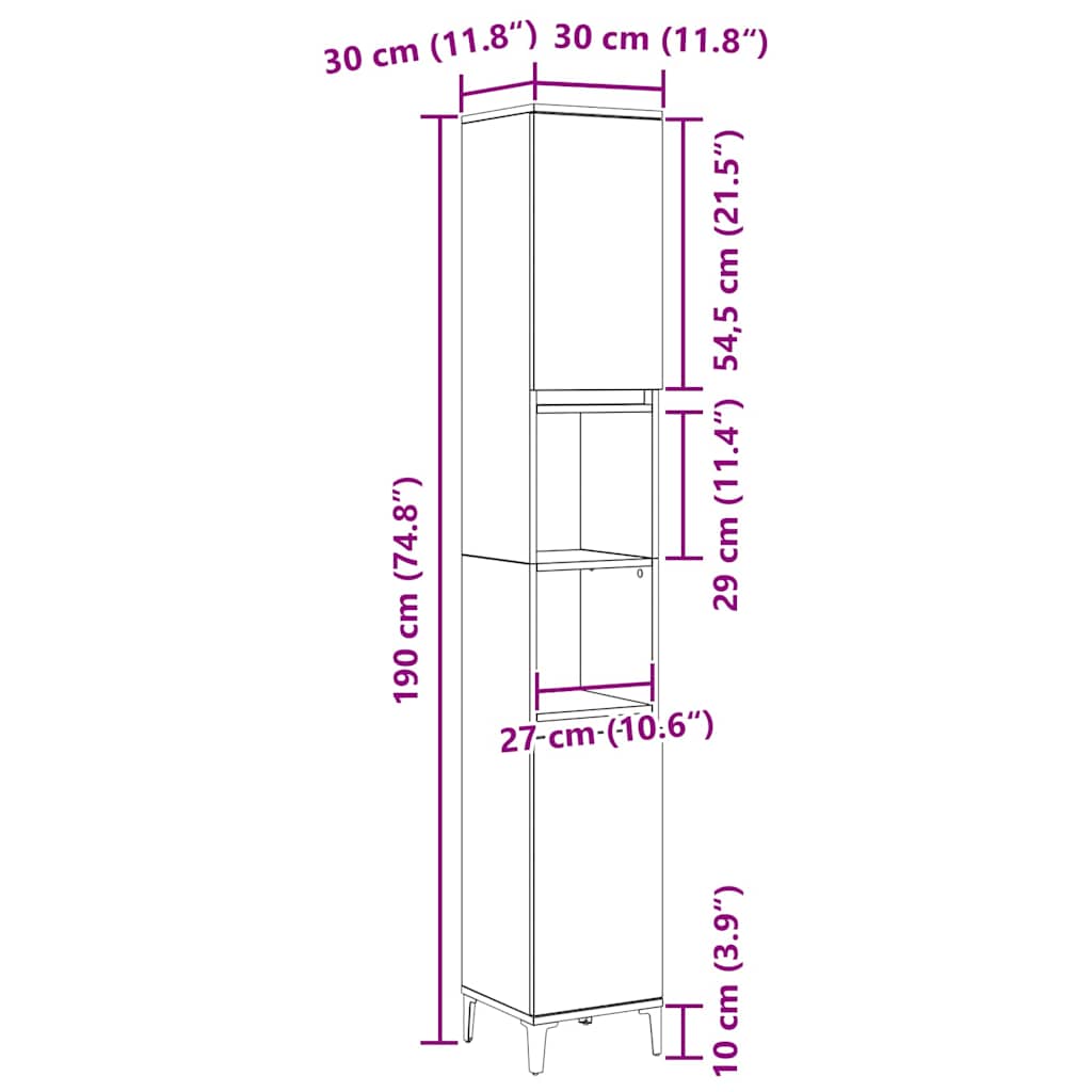 Tato moderní koupelnová úložná skříň se skvěle hodí do současných koupelen a spojuje funkčnost se stylem. Má elegantní tvar a minimalistický design, což dává smysl pro různé koupelnové potřeby, zatímco zároveň zlepšuje vzhled místnosti. Ideální pro ty, co chtějí mít uklizeno, skříň se hodí do malých i velkých koupelen a vytváří praktickou a stylovou atmosféru. Kuželové nohy dodávají eleganci a usnadňují úklid pod skříní.