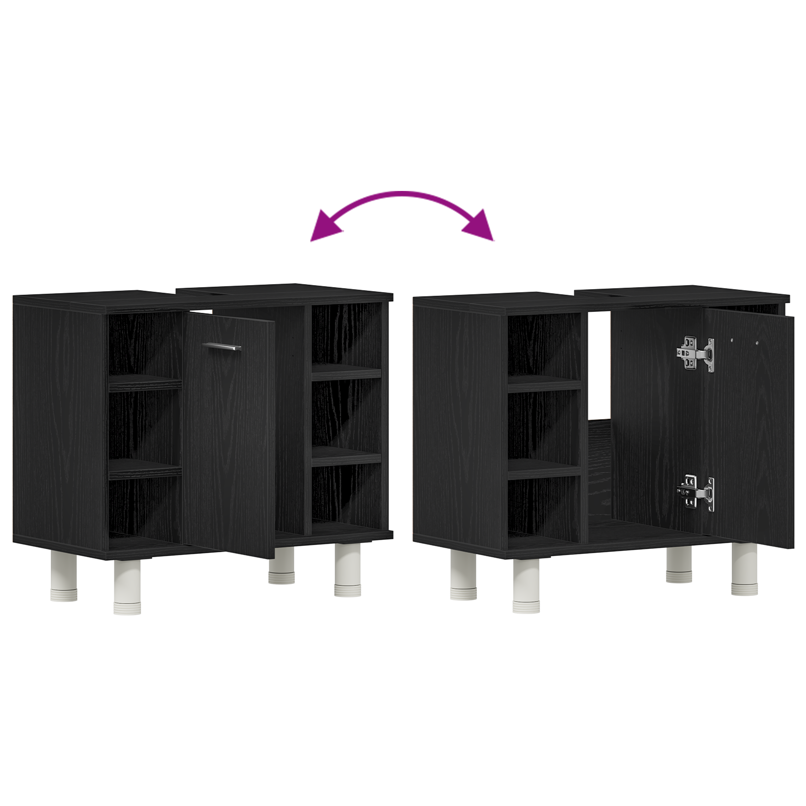 Tahle moderní koupelnová skříňka je stylové řešení pro ukládání, kde se potkává funkčnost s designem. Je určená výhradně pro vnitřní použití a zajišťuje, že koupelna poskytuje dostatek úložného prostoru při zachování elegantního a minimalistického vzhledu. Tvar a konstrukce skříňky nabízí dostatek místa pro různé koupelnové potřeby, přičemž staví na udržování pořádku a na tom, aby všechno mělo své místo. Její design snadno zapadne do moderního dekoru a je univerzální pro každého, kdo hledá nenápadné úložné řešení.