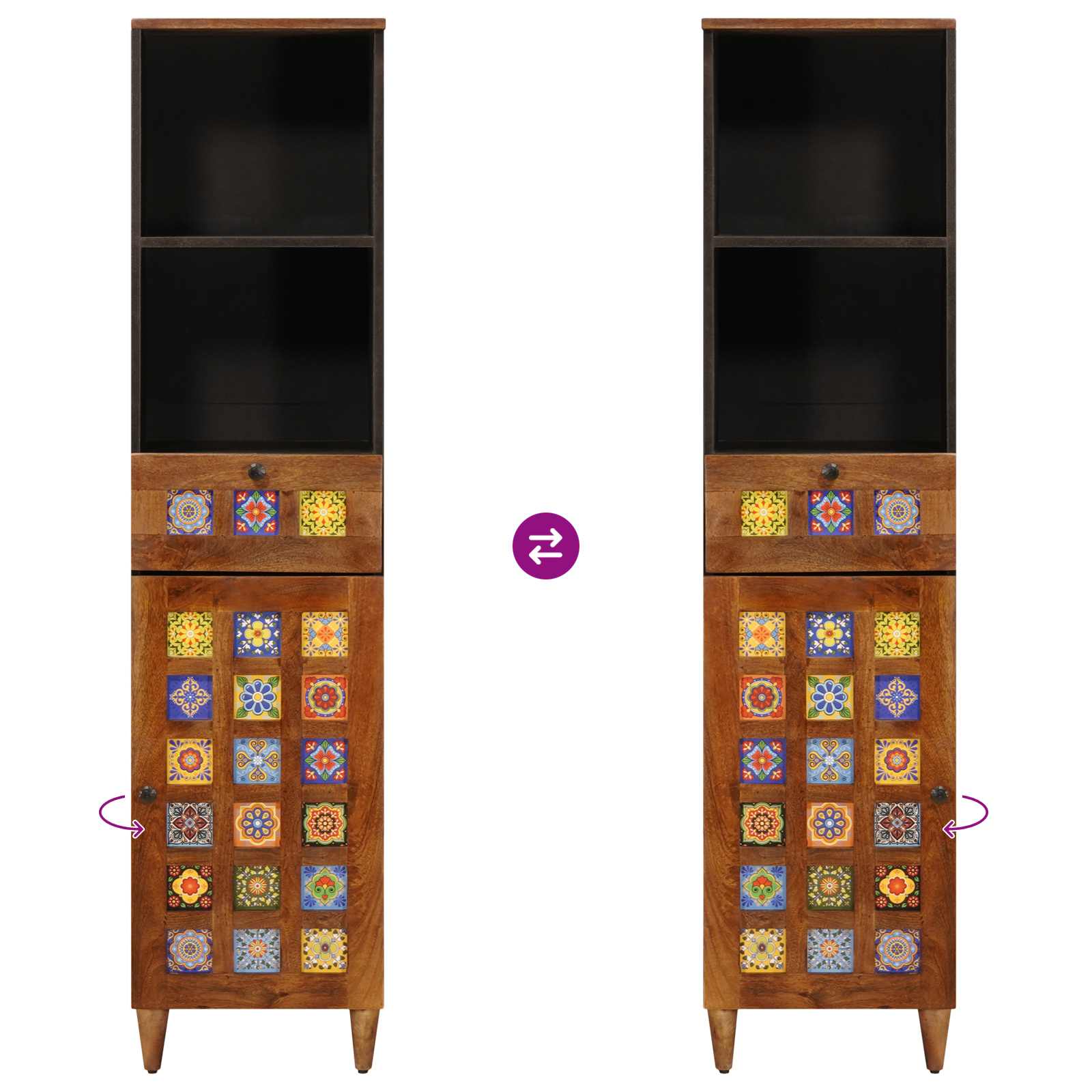 Tahle moderní koupelnová skříňka je perfektní mix funkčnosti a stylu, a dělá každou koupelnu výjimečnou. Má elegantní obdélníkový tvar a krásnou kombinaci masivního magnovního dřeva s kovovými nohami, co skvěle zapadá do současného designu. S čistými liniemi a jednoduchými detaily je tahle skříňka ideální pro moderní domácnosti, nabízí hezké úložné řešení, a přitom zachovává jednoduchost a eleganci. Její výrazná výška dodává architektonický prvek, co obohacuje jakoukoli koupelnu.