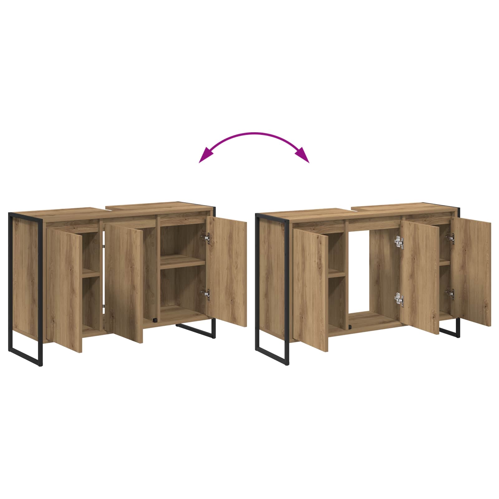 Ocelové nohy: Skříňka stojí na ocelových nohách, které jí dodají stabilitu a spolehlivost. Nejen, že tím získáváte robustní základ, ale také se na designu projevuje industriální styl. Tyhle nohy zaručují, že bude skříňka dlouho sloužit a navíc vypadá skvěle.