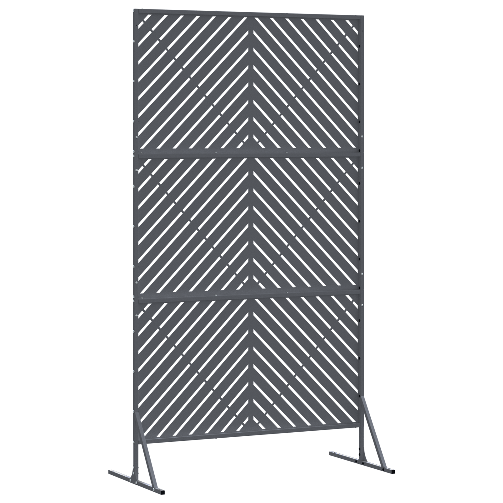 Tato zahradní clona nabízí moderní a stylové řešení pro venkovní soukromí. Její obdélníkový tvar a elegantní linie ji činí perfektním doplňkem do zahrad a na terasy. Díky své robustní konstrukci chrání vaše venkovní prostory před zvědavými pohledy a větrem, a dodává klidnou atmosféru pro relaxaci nebo zábavu s přáteli.
