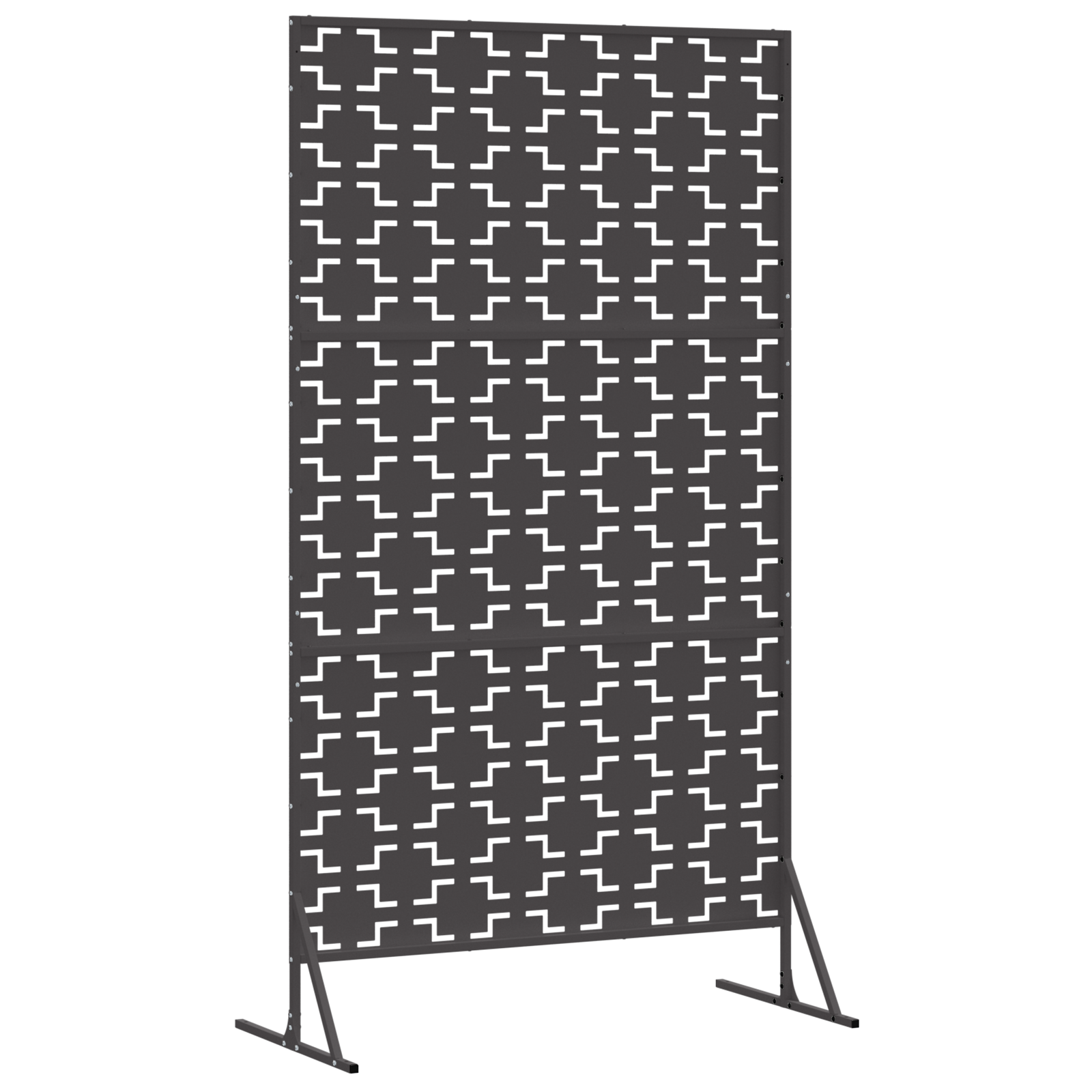 Tato zahradní clona nabízí moderní a stylové řešení pro venkovní soukromí. Její obdélníkový tvar a elegantní linie ji činí perfektním doplňkem do zahrad a na terasy. Díky své robustní konstrukci chrání vaše venkovní prostory před zvědavými pohledy a větrem, a dodává klidnou atmosféru pro relaxaci nebo zábavu s přáteli.