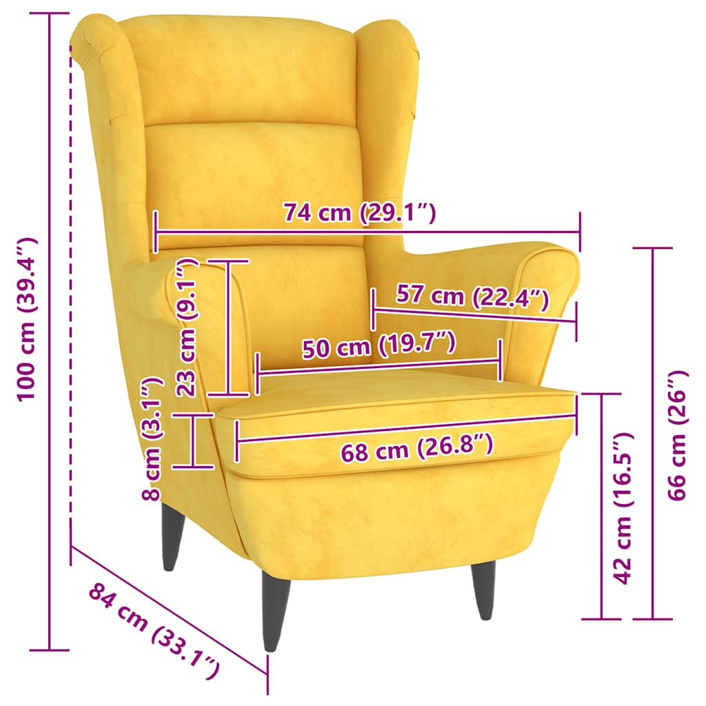 Křeslo je čalouněné sametem, je tedy velmi hebké na dotek a má dlouhou životnost. Stabilitu zajišťuje rám z překližky. Polstrované opěradlo a sedák vám zajistí pohodlné posezení.