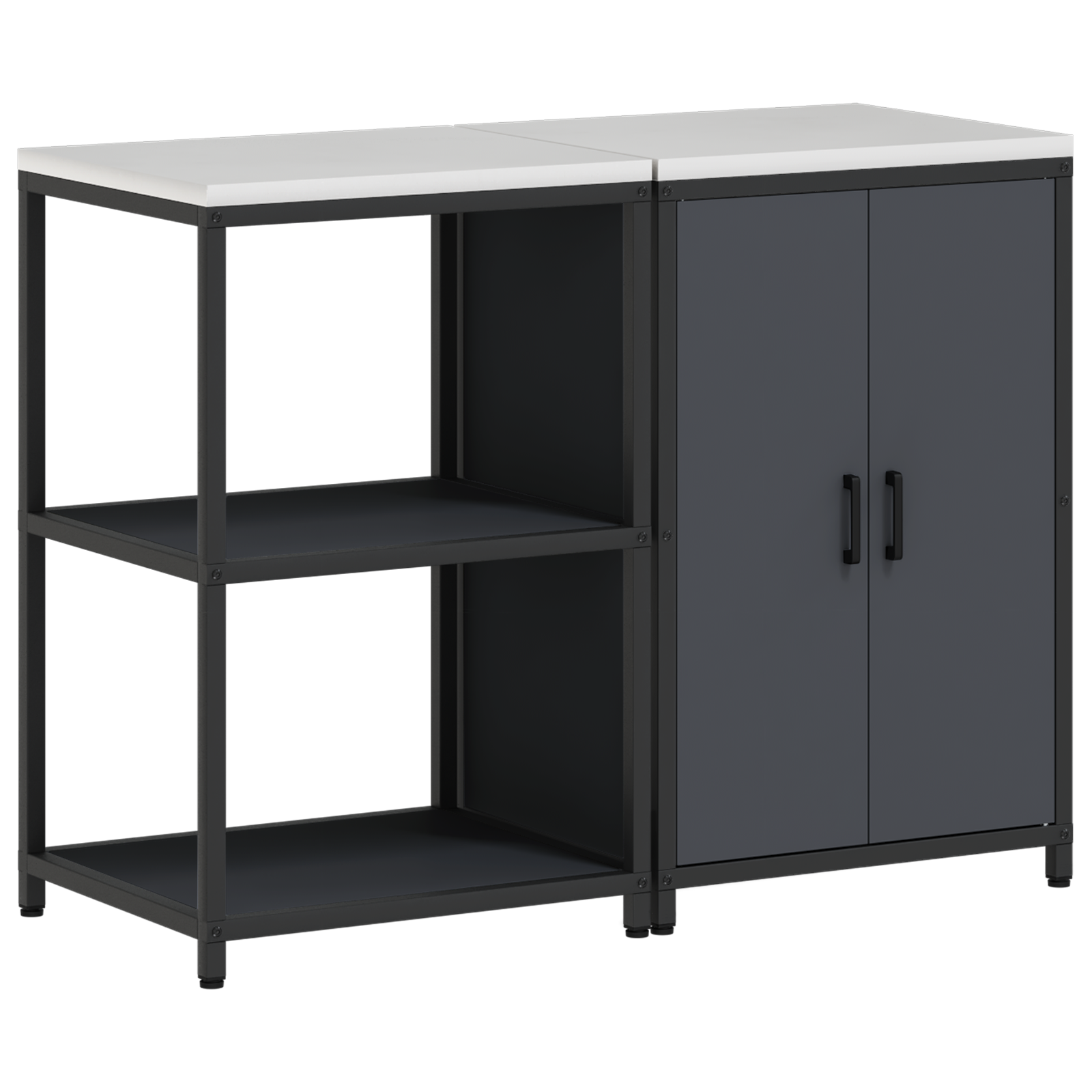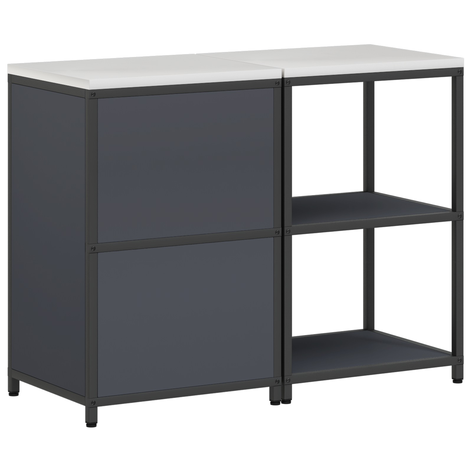 • Pevný ocelový rám Tato kuchyňská skříňka má odolnou konstrukci, co vydrží roky. Práškový lak ji chrání a dělá jí hezkou, i při každodenním používání. Ideální do kuchyní nebo garáže, vypadá skvěle a nabízí spolehlivé úložné prostory.