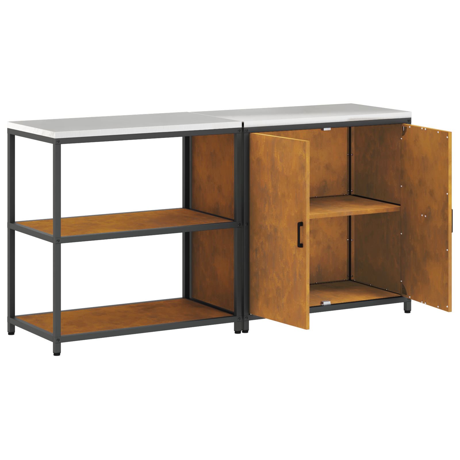 Kuchyňská skladovací sada s policí se dveřmi 2 pcs Rezavá Ocel
