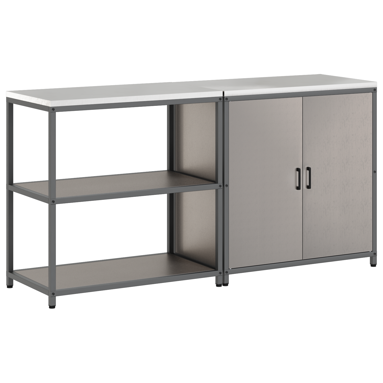 • Všestranné police: Kovové police unese pořádný náklad a zůstávají pevné. Jsou navrženy tak, aby poskytovaly dostatečnou podporu a umožňovaly flexibilní organizaci nástrojů nebo potřeb.