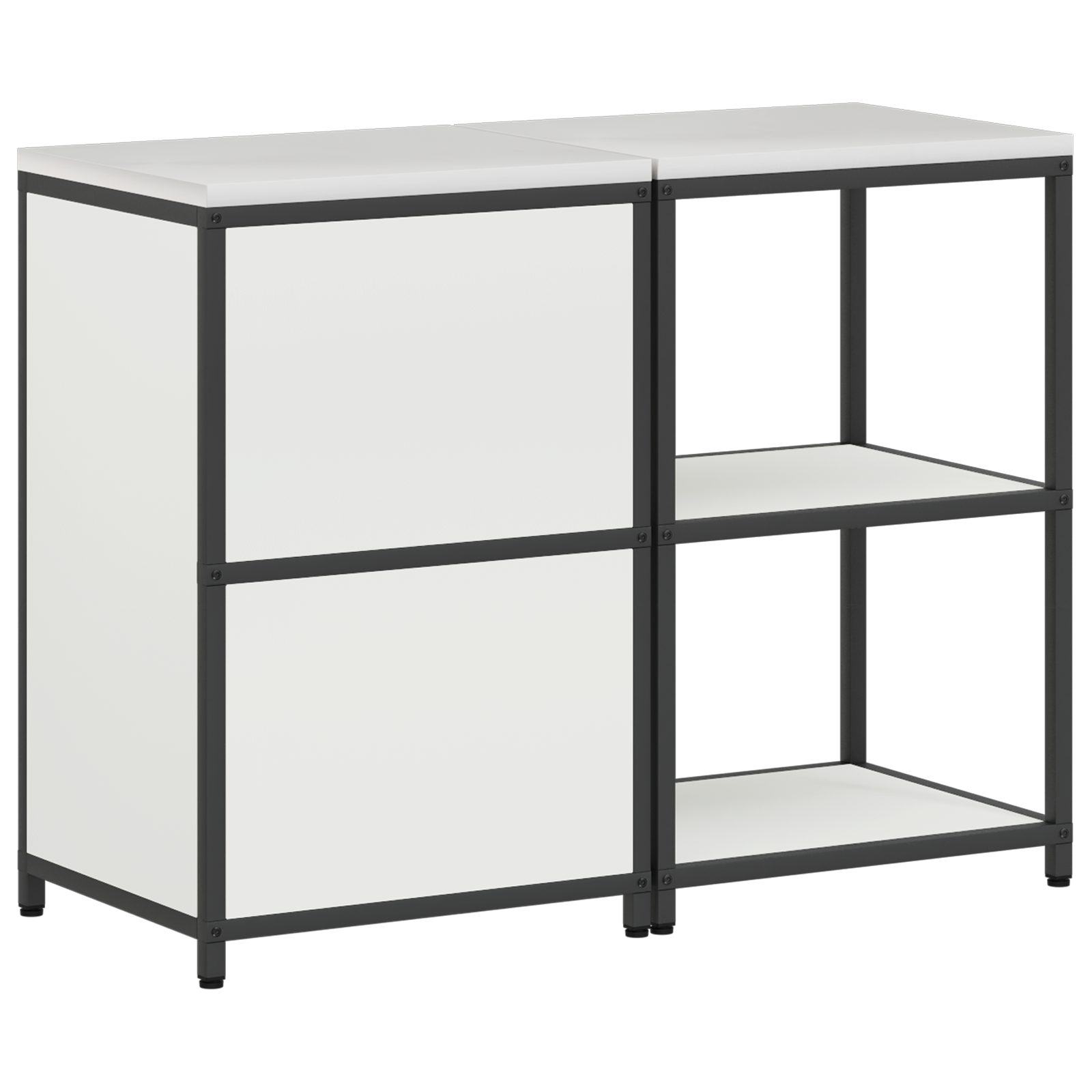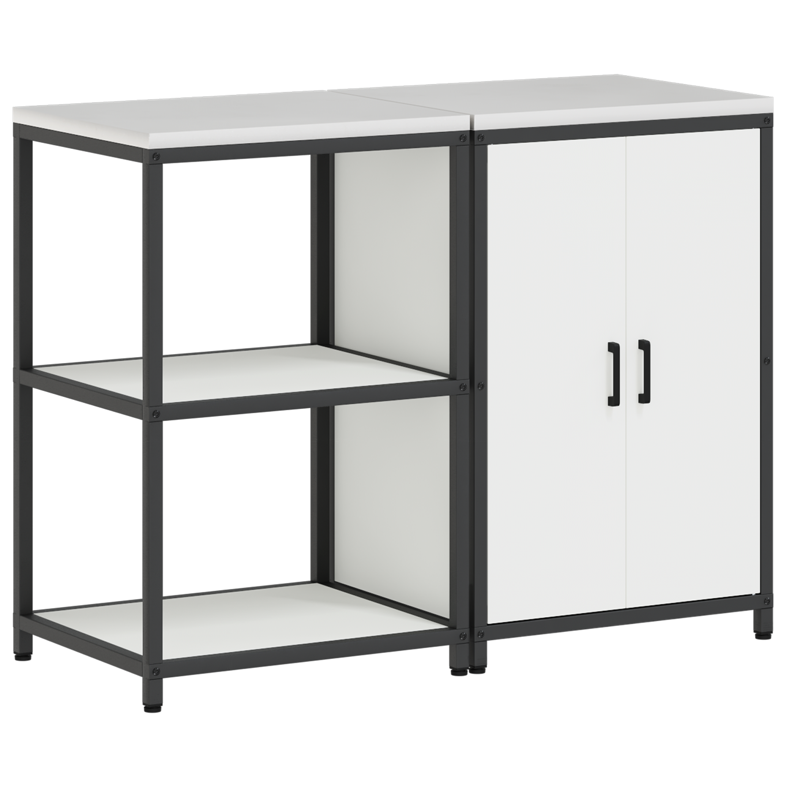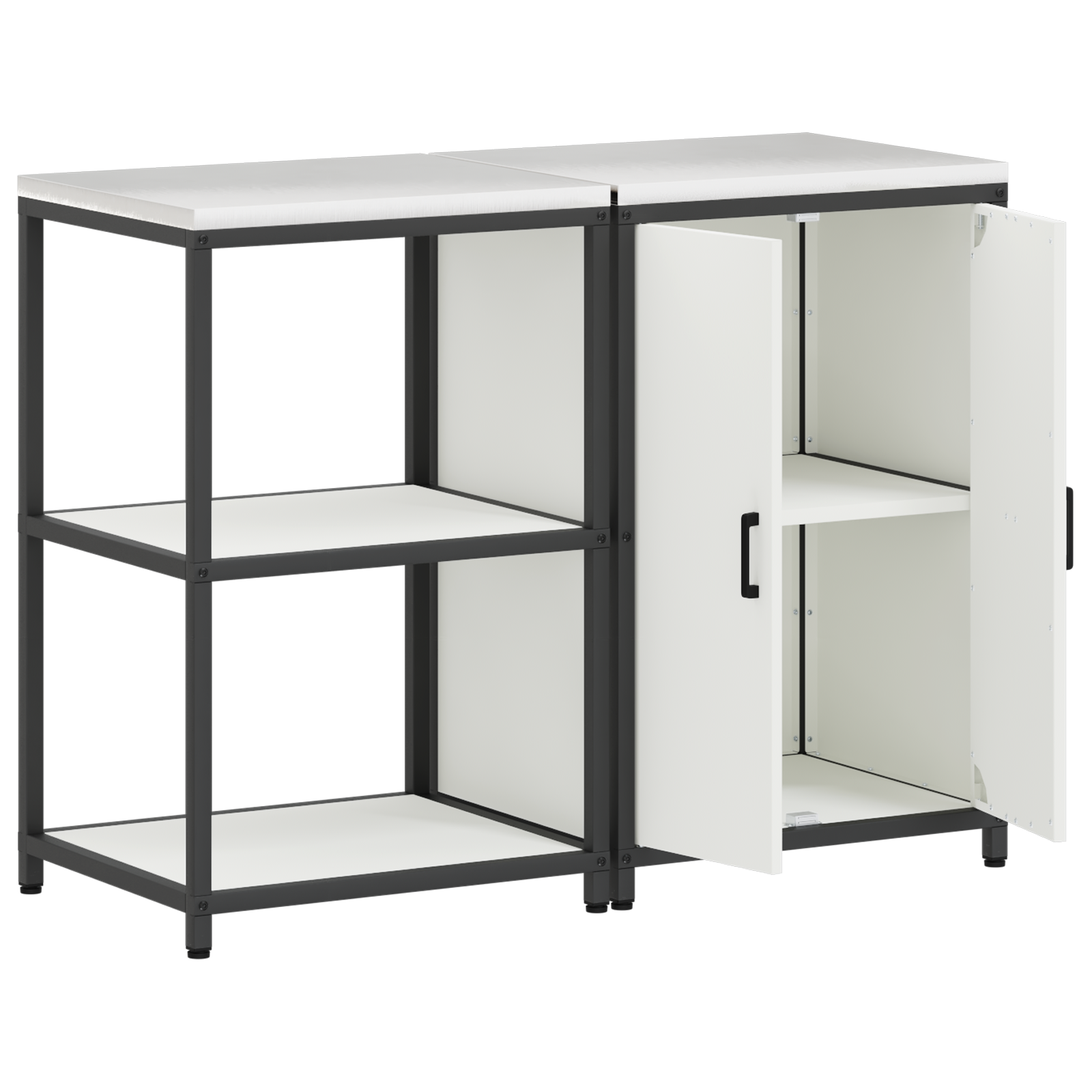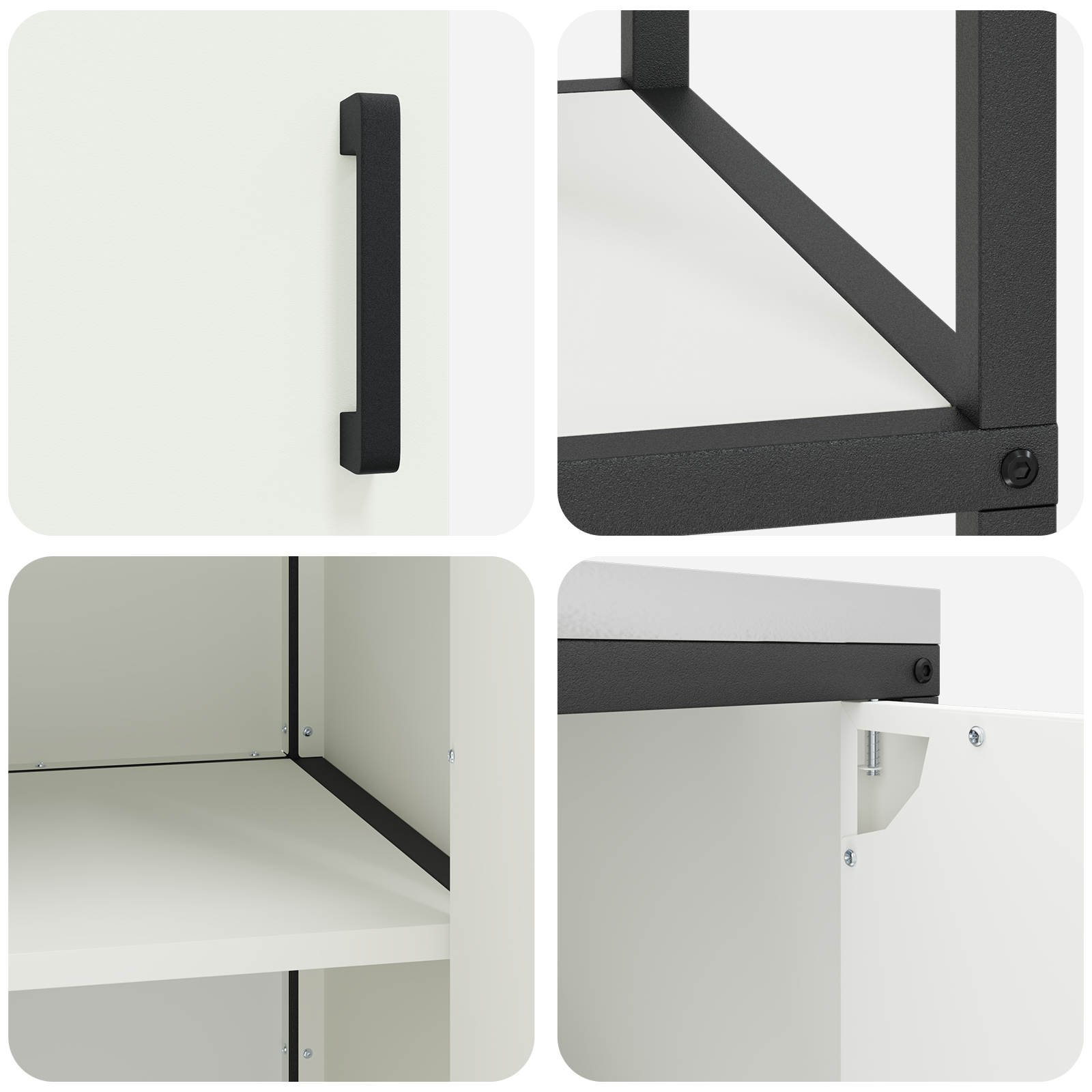 • Pevný ocelový rám Tato kuchyňská skříňka má odolnou konstrukci, co vydrží roky. Práškový lak ji chrání a dělá jí hezkou, i při každodenním používání. Ideální do kuchyní nebo garáže, vypadá skvěle a nabízí spolehlivé úložné prostory.