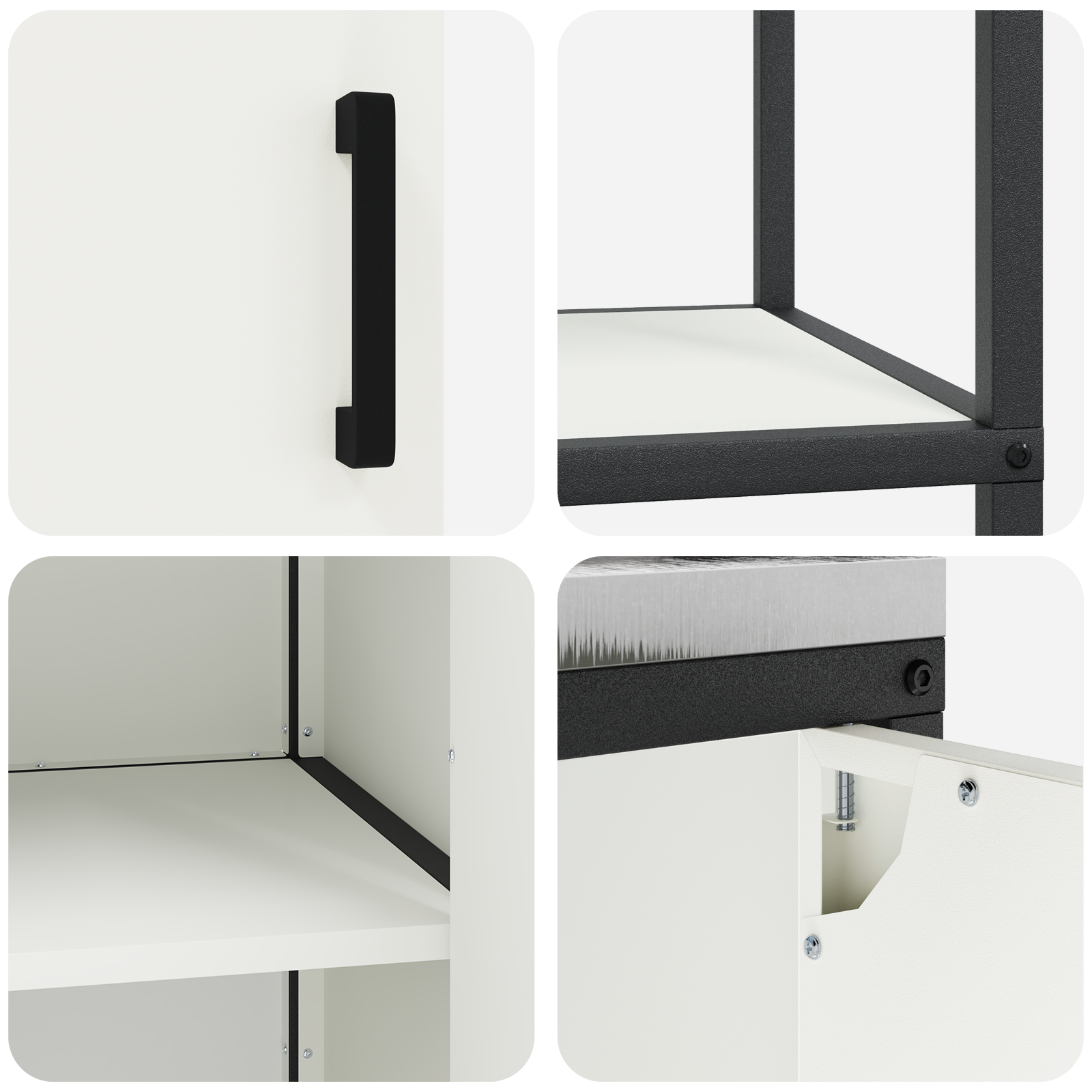 Tato moderní úložná jednotka do kuchyně je doslova funkční elegance; spojuje sílu vhodnou pro komerční použití s moderním stylem, který se skvěle hodí do každé domácnosti nebo pracovního prostředí. Určeno pro ty, co oceňují nedostatky i odolnost, tato jednotka má štíhlý profil s rámem z práškově lakované oceli, což zaručuje odolnost proti každodennímu používání. Její všestranné využití ji dělá praktickou volbou do různých prostor, jako jsou užitkové místnosti nebo garáže.