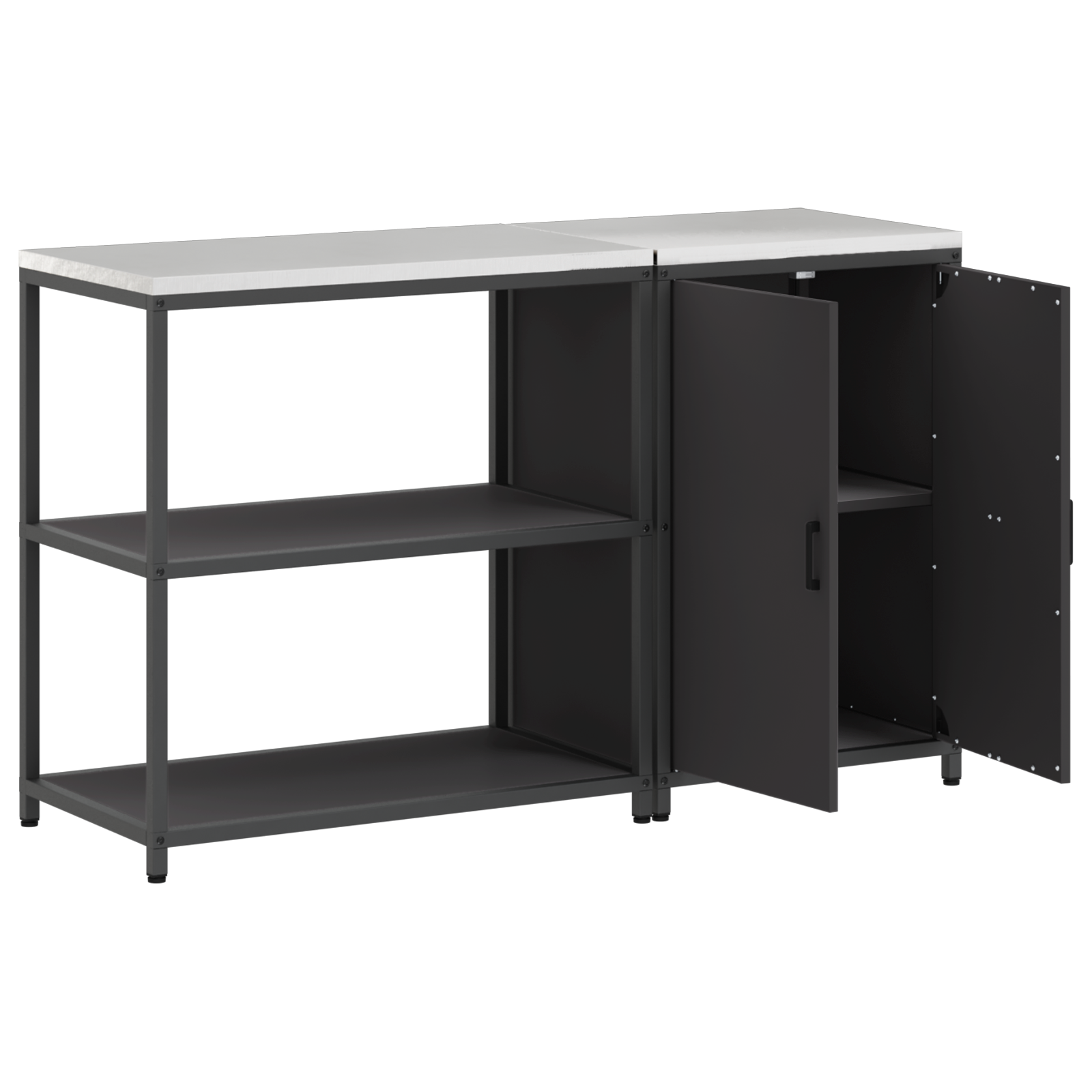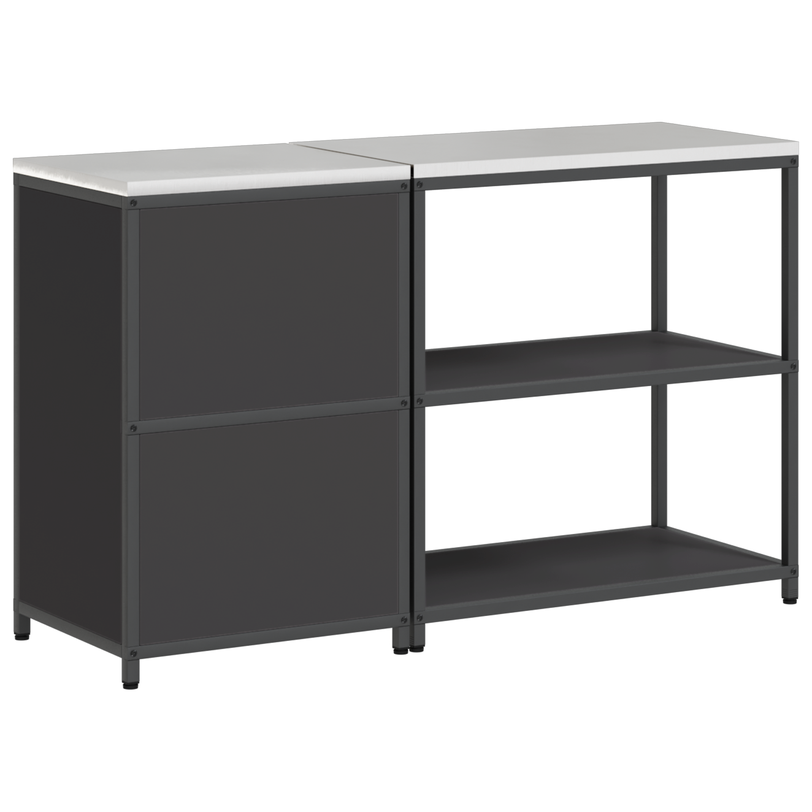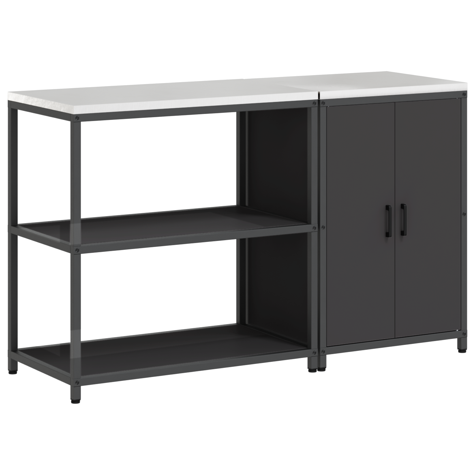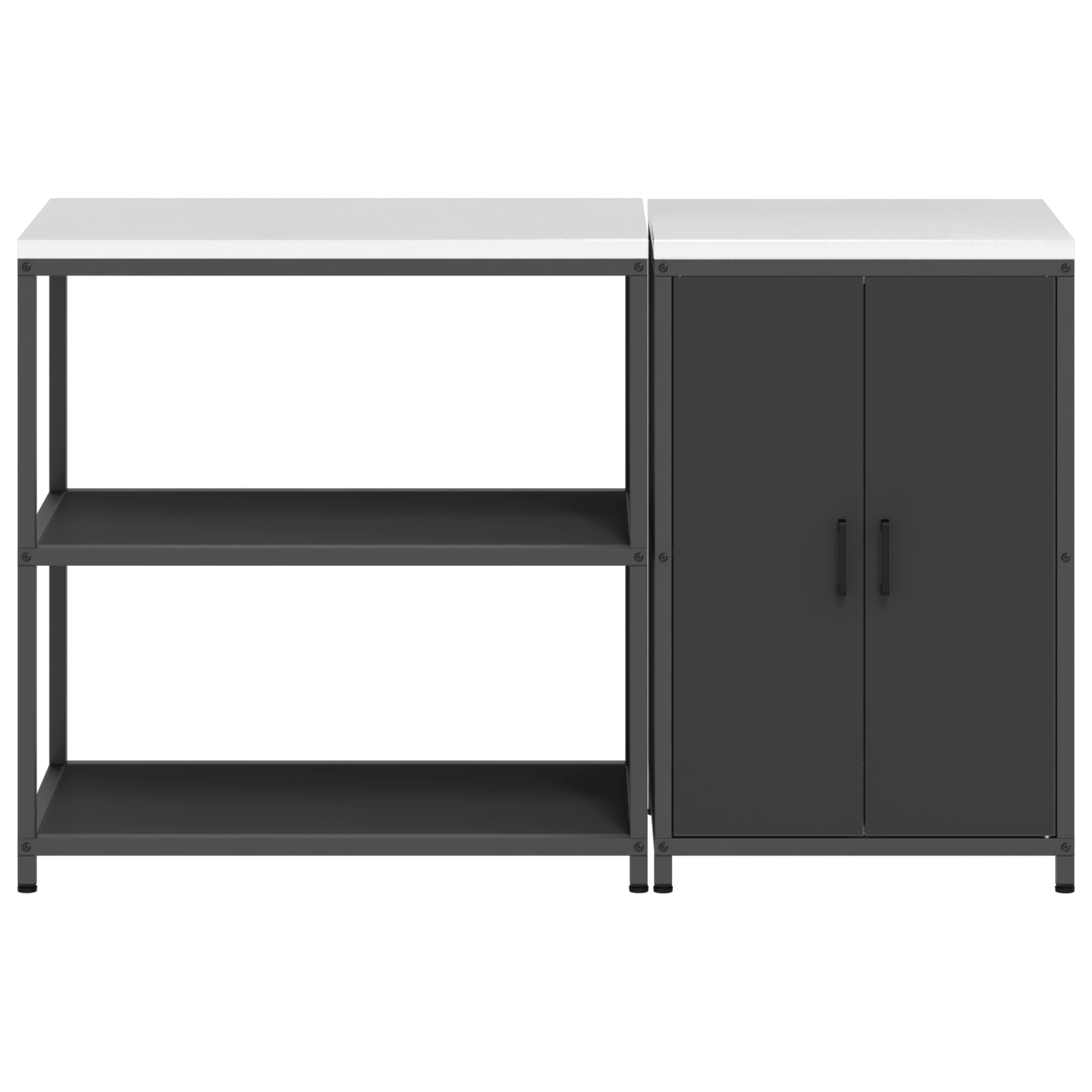 • Pevný ocelový rám Tato kuchyňská skříňka má odolnou konstrukci, co vydrží roky. Práškový lak ji chrání a dělá jí hezkou, i při každodenním používání. Ideální do kuchyní nebo garáže, vypadá skvěle a nabízí spolehlivé úložné prostory.
