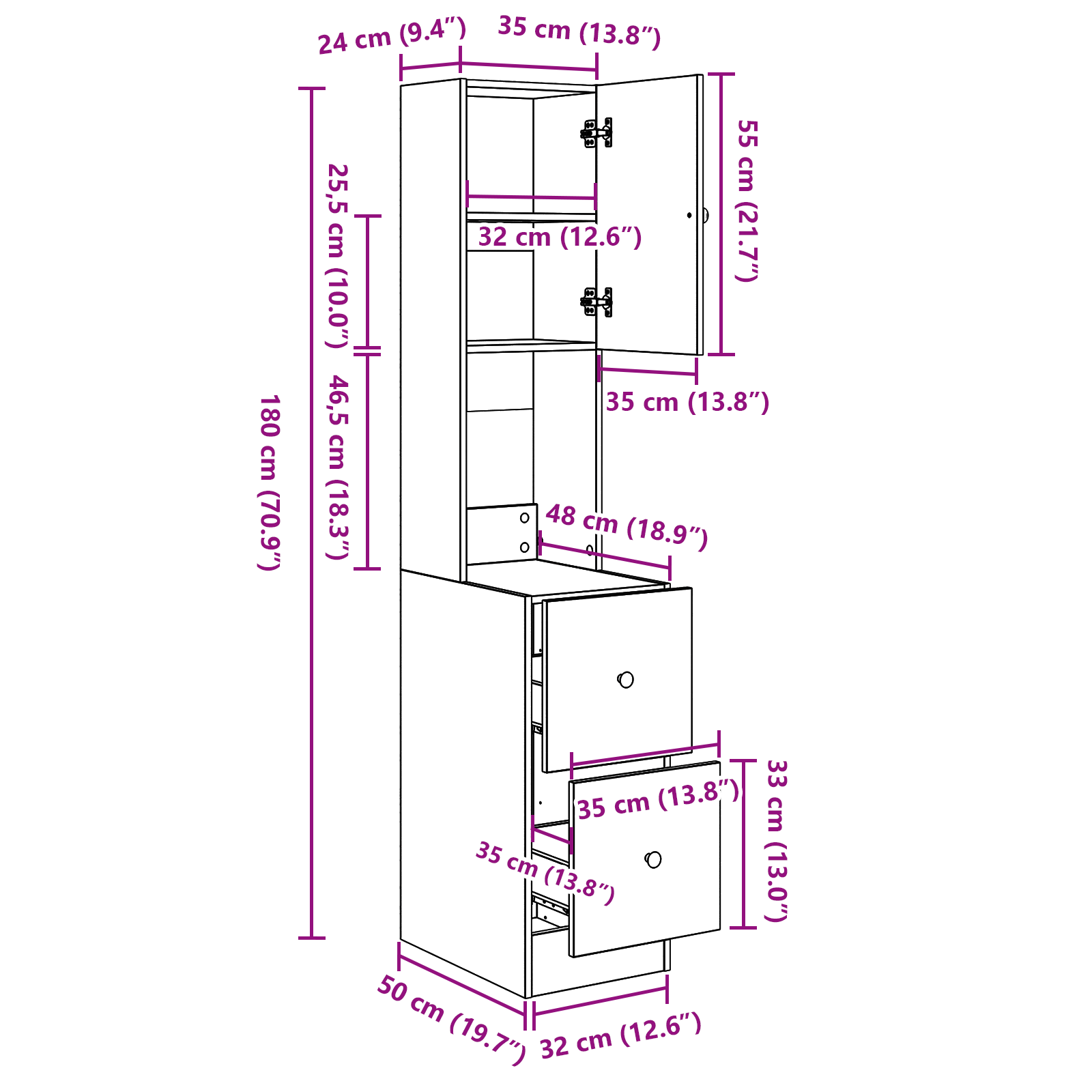 • Celkové rozměry: 35 x 50 x 180 cm (D x Š x V)