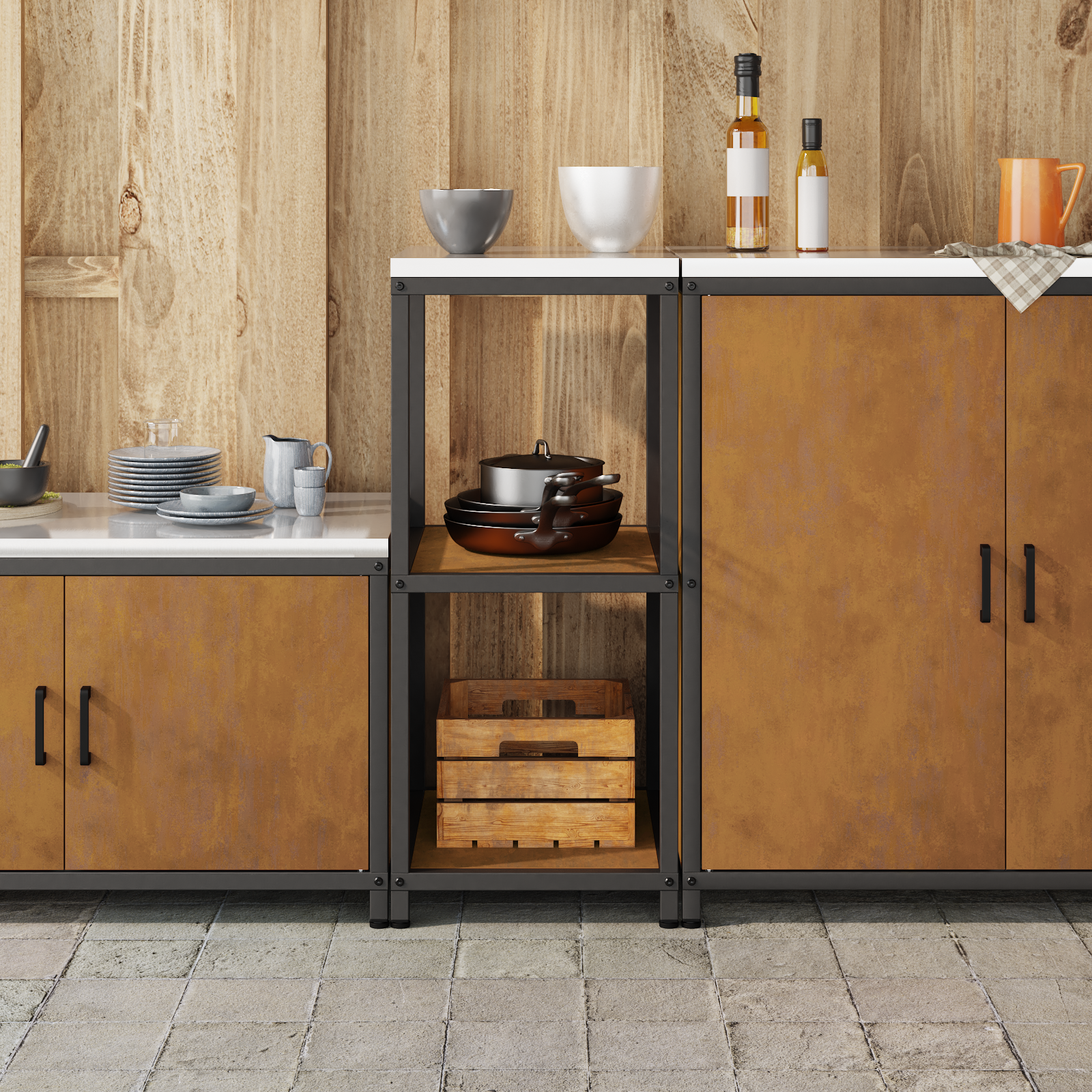 Tento regál na kuchyňské potřeby spojuje moderní jednoduchost a funkční design. Skvěle zvýší úložný prostor a dodá vašemu kuchyňskému prostředí kouzlo. Hladké obdélníkové tvary, čisté linie a minimální detaily mu dodávají eleganci a zároveň je super praktický. Je určený do interiérů a skvěle organizuje nádobí, kuchyňské potřeby nebo potraviny v jakékoli moderní kuchyni. Stabilní ocelová konstrukce zajišťuje, že vydrží každodenní používání, přemění vaši kuchyň ve skvělé místo pro přípravu pokrmů a užijete si víc zábavy.