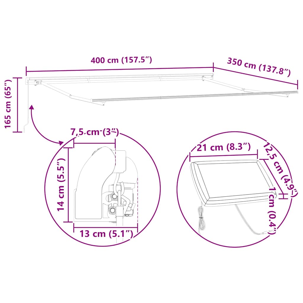 Tato výsuvná sluneční clona je skvělý mix stylu a funkce. Nabízí výborné stínění pro tvé venkovní prostory. S čistými liniemi a minimalistickým stylem je ideální na balkony nebo terasy, super pro relaxaci. Je navržená tak, aby vydržela počasí, a díky robustnímu ručnímu mechanismu si ji jednoduše vytáhneš nebo schováš podle potřeby. Ideální pro pohodové posezení nebo klidné chvíle venku, rozhodně přispěje k příjemné atmosféře s vestavěnými LED světly.