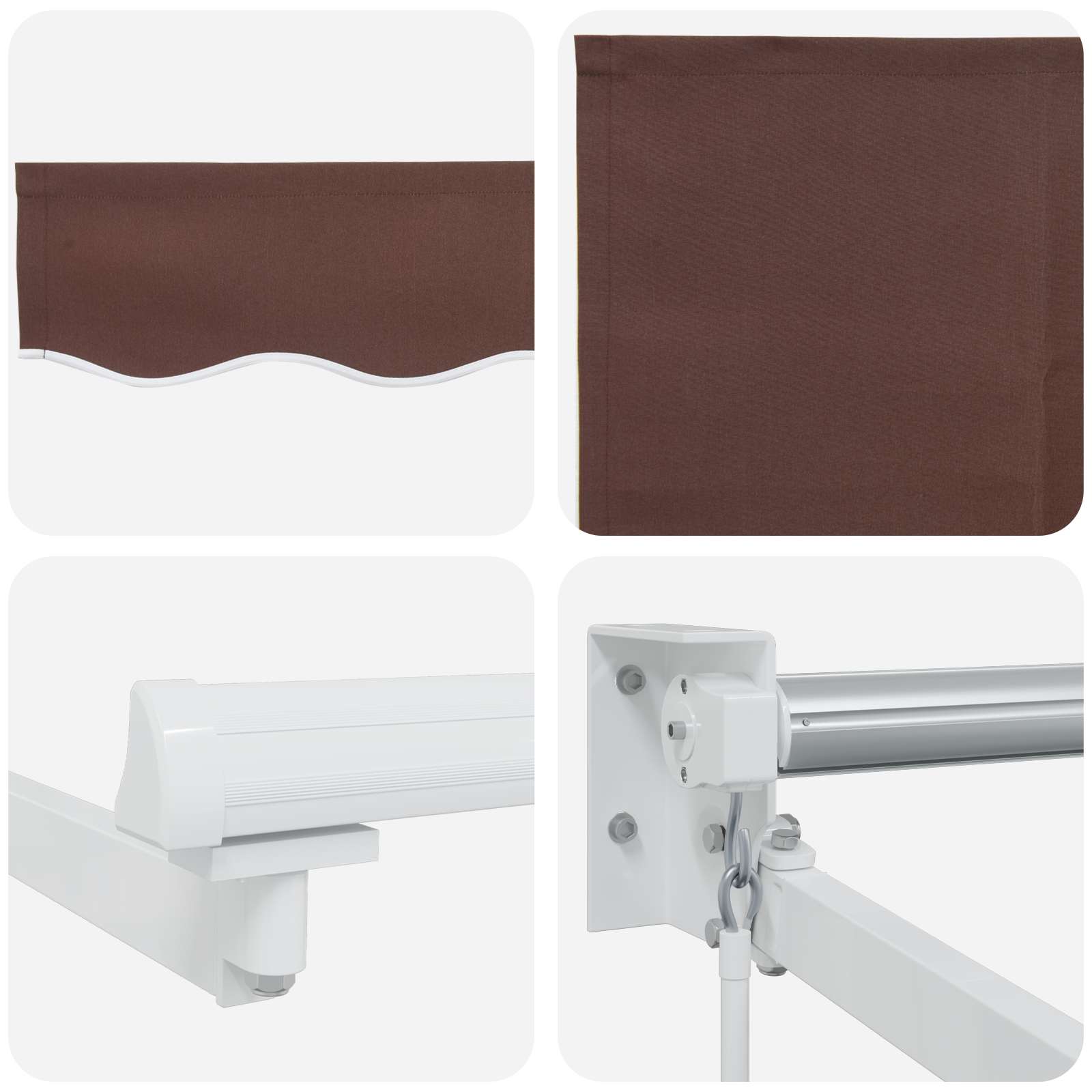 • Pokyny pro údržbu: Udržení markýzy v top stavu je jednoduché. Stačí otřít povrch vlhkým hadříkem, aby se odstranila špína, a tak zajistíte dlouhou životnost a čistý vzhled.