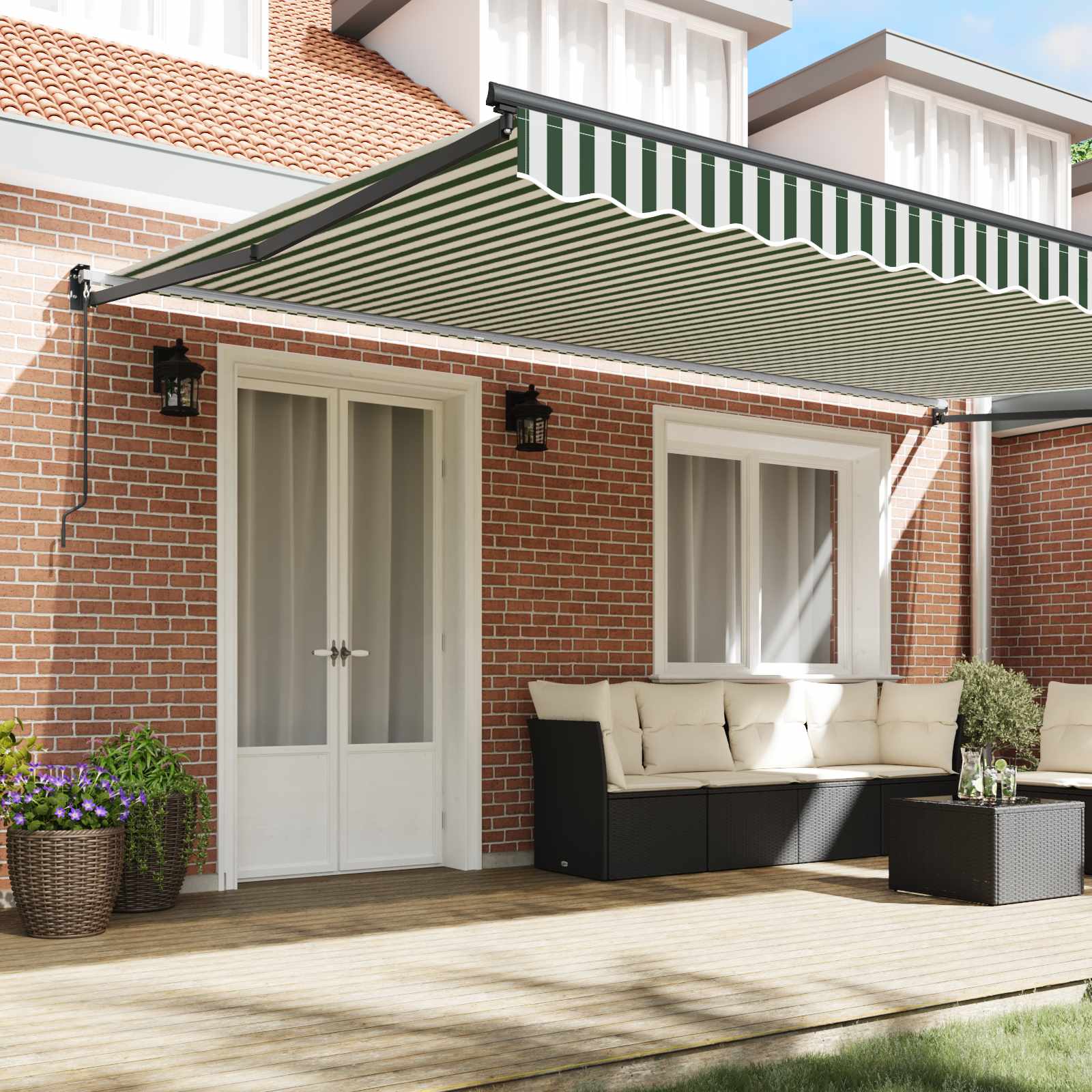 Moderní retractable markýza je cool venkovní stínění, navržená pro ty, co hledají stylový únik před sluncem. Její elegantní obdélníkový tvar dodá moderní vzhled terasám a zahradám, kombinuje jednoduchost s minimalismem. Markýza se snadno rozkládá, nabízící tak prostor ideální pro letní akce nebo relaxaci. Vyrobená ze 100% polyesterového plátna, markýza vytváří moderní atmosféru a poskytuje ochranu proti horkému slunečnímu světlu. Není to jen stín, ale také stylový prvek pro váš venkovní prostor.