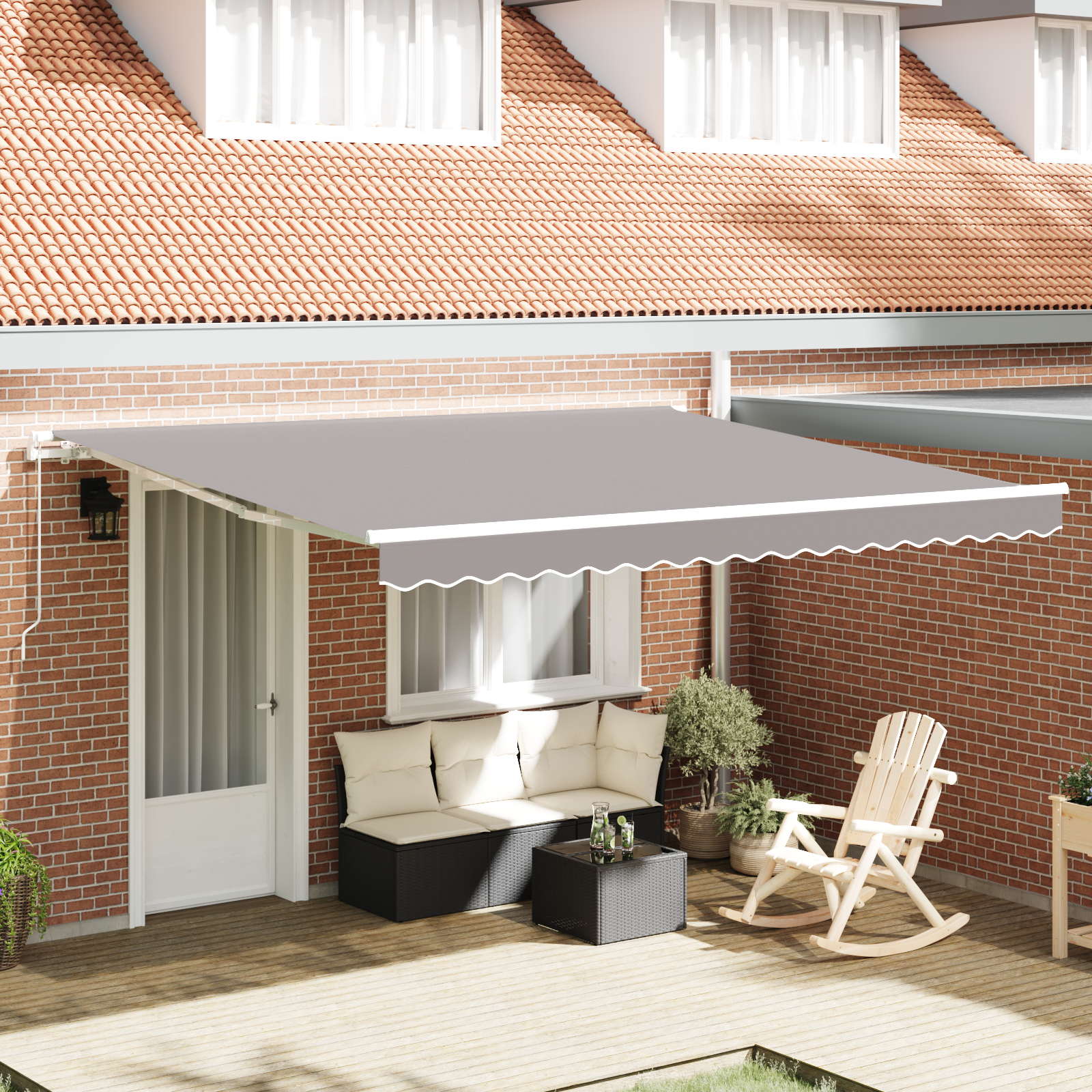 Tato výsuvná markýza promění váš venkovní prostor na stíněné místo, kde se skvěle sedí. Má rozměry 400 x 350 x 165 cm a poskytuje široký stín – ideální pro terasy a zahrady během léta. Světle šedé a bílé barvy se hodí do různých stylů a vylepšují venkovní život. Markýzu si lehce vytáhnete nebo zasunete podle toho, jak svítí slunce, což je super pro relaxaci nebo zábavu s přáteli.