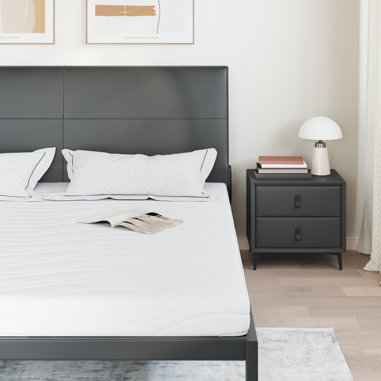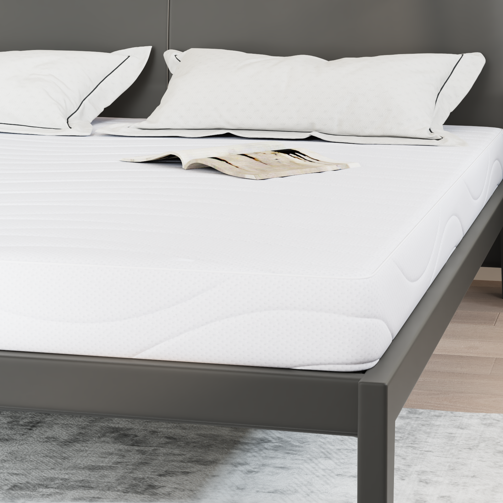 Tato moderní gelová matrace z paměťové pěny v sobě kombinuje jednoduchost a funkčnost. Skvělá pro všechny spánkové polohy, má ideální rovnováhu měkkosti a podpory. Tenká bílá matrace vylepšuje vzhled jakékoli ložnice svojí čistou linií a minimalistickým designem a vytváří klidnou atmosféru pro uvolňující noční spánek. Představte si, jak si odpočinete na povrchu s gelem, který vás uvede do hlubokého a obnovujícího spánku a zaručí, že se během noci budete cítit chladně a pohodlně.