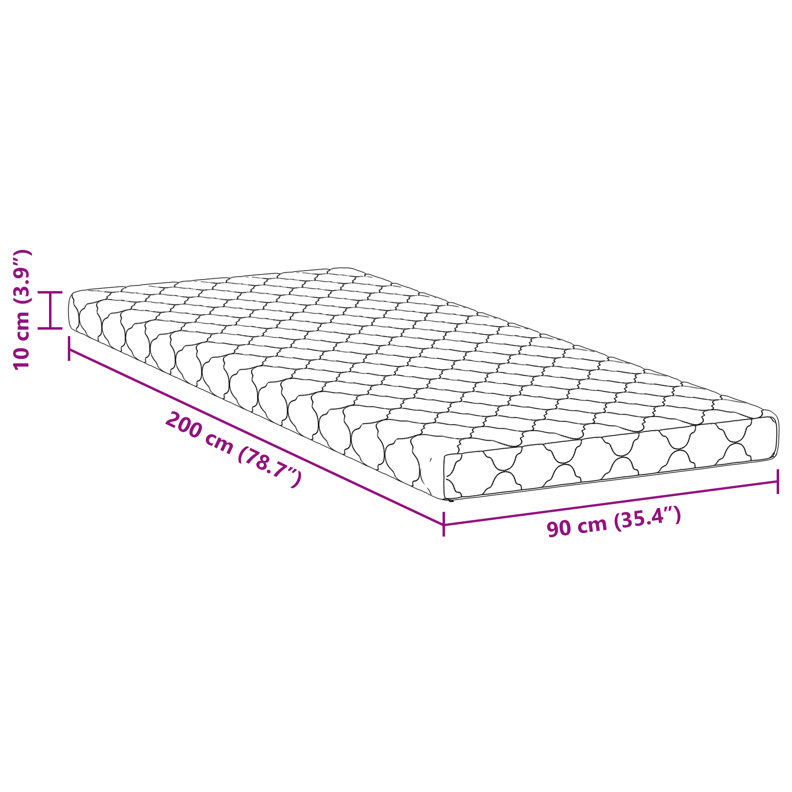 • Celkové rozměry: 200 x 90 x 10,5 cm (D x Š x V)
