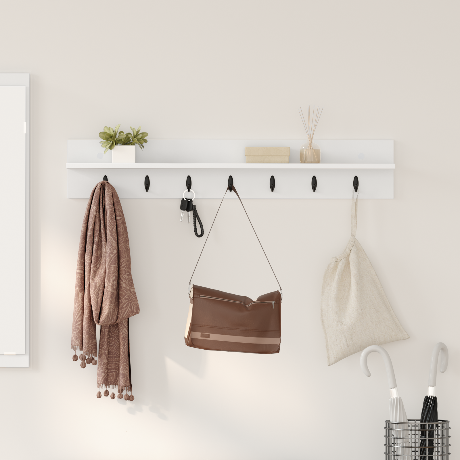 • Odolné háčky: Věšák má silné háčky, které bezpečně unesou různé předměty. Jsou rozmístěny tak, abyste měli co nejvíc místa na kabáty, šály a tašky, a tím se minimalizoval nepořádek. Jejich robustní konstrukce zajistí, že vše zůstane na svém místě.