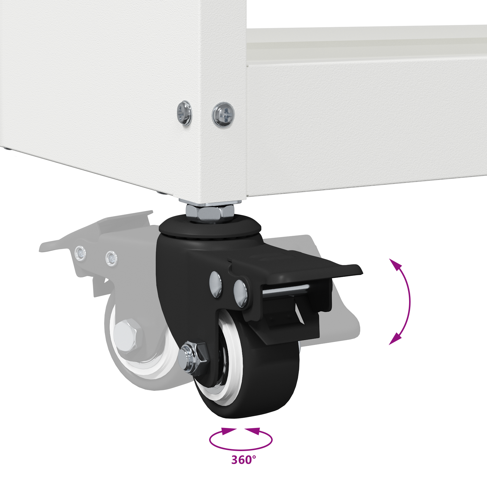 • Pohyb a zamykatelné kolečka 360° otáčivá kola usnadňují pohyb vozíku v pracovním prostoru. Dvě kola zamykají, takže je stabilní, když ho používáš, a snadno se hýbe, když ho nepotřebuješ.