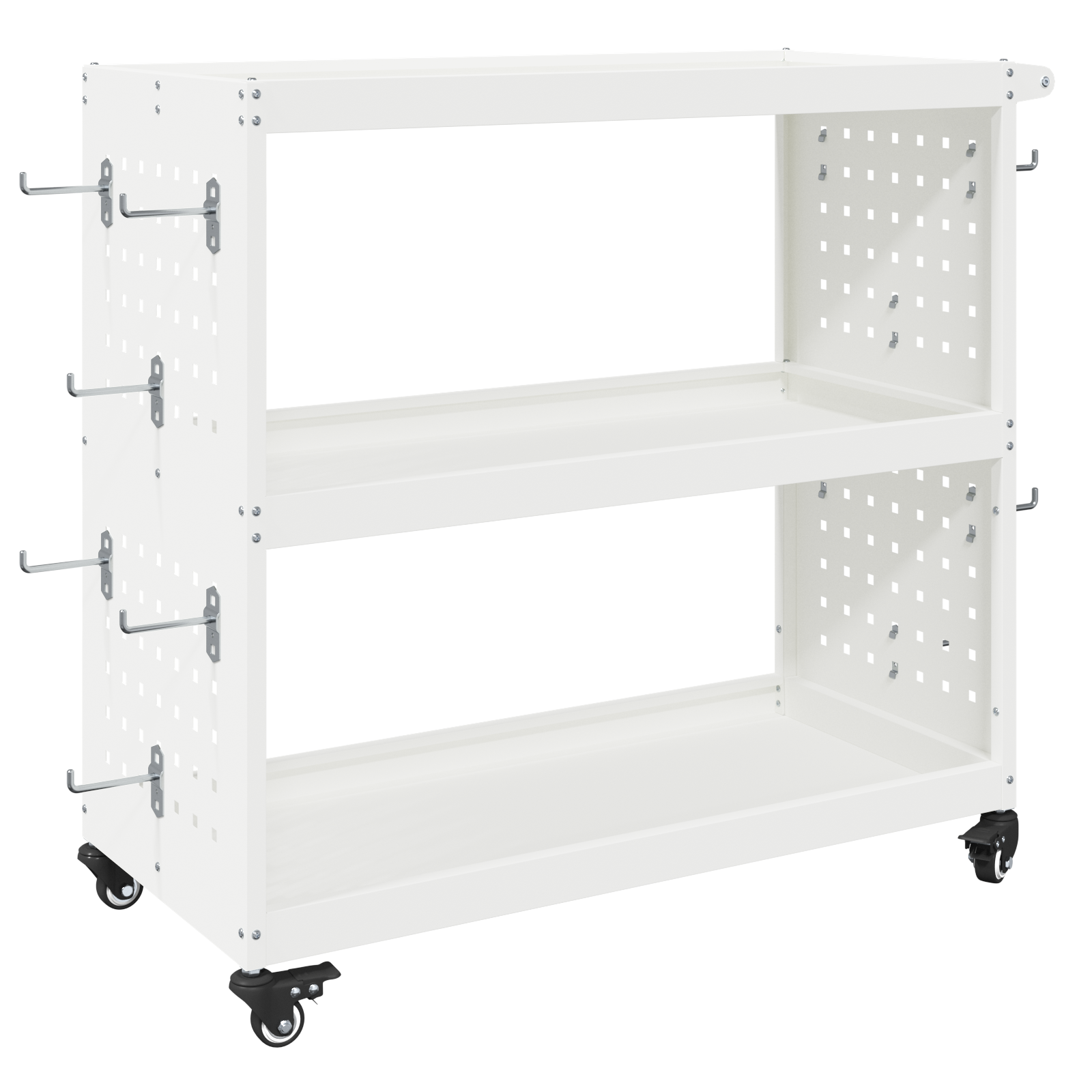 Tento robustní vozík na nářadí spojuje skvělý industriální styl se solidní funkčností, což ho činí ideálním pro každého, kdo má rád pořádek a potřebuje něco silného. Je vyroben z válcované oceli, je odolný a nabízí spoustu možností úložného prostoru. Díky matnému povrchu a obdélníkovému tvaru se skvěle hodí do garáže nebo dílny. A s 360° otáčivými koly se s ním snadno pohybuje, zatímco zamykací kolečka zajišťují stabilitu, když ho potřebuješ.