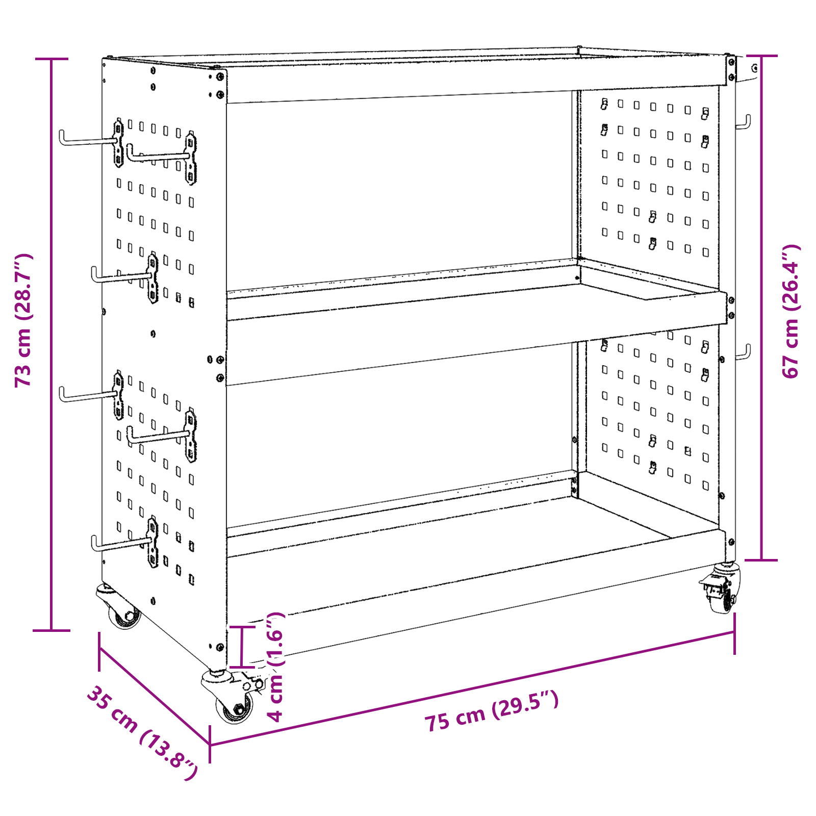 • Robustní ocelová konstrukce Vozík z válcované oceli je trvanlivý a stabilní. Skvělá volba pro ukládání těžkého vybavení, spolehlivý na každodenní používání.