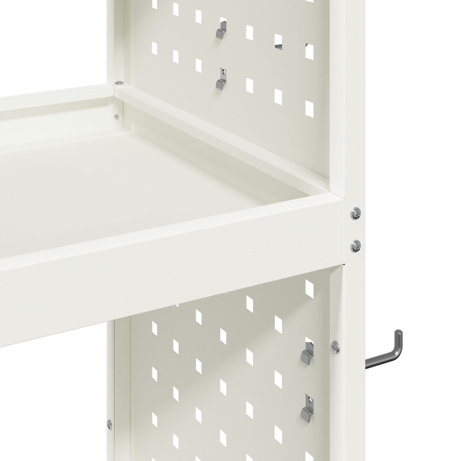 • Multifunkční police Má kovové police, ideální pro organizaci různých nástrojů a doplňků. Efektivně využívají prostor, což ti pomůže lépe pracovat.