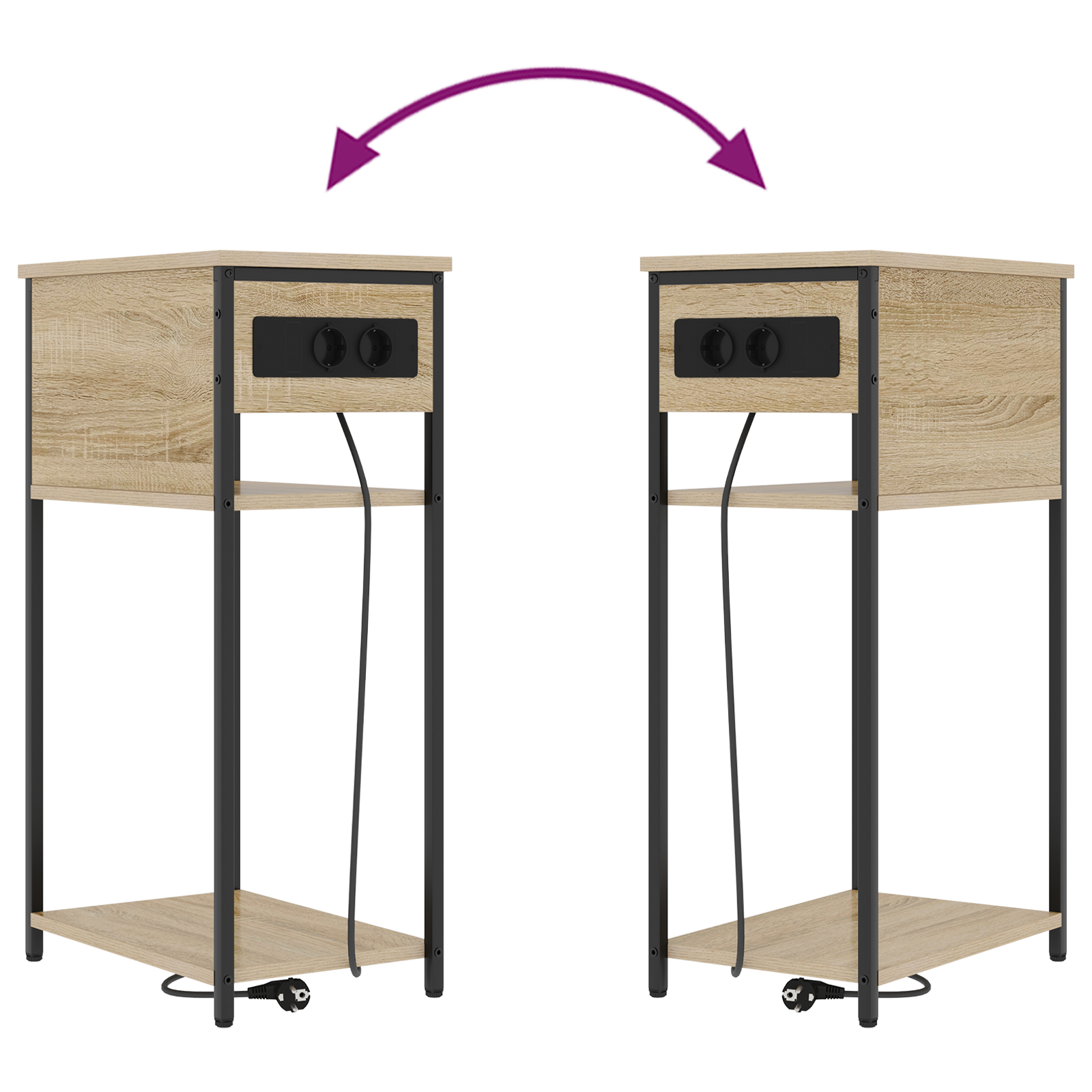 • Materiály: Noční stolek je vyroben z kompozitního dřeva, což mu dodává odolný a hladký povrch. Ocelové nohy mu poskytují silnou oporu a skvěle doplňují rustikální vzhled, takže stolek vydrží a přitom se dobře hodí do moderního interiéru.