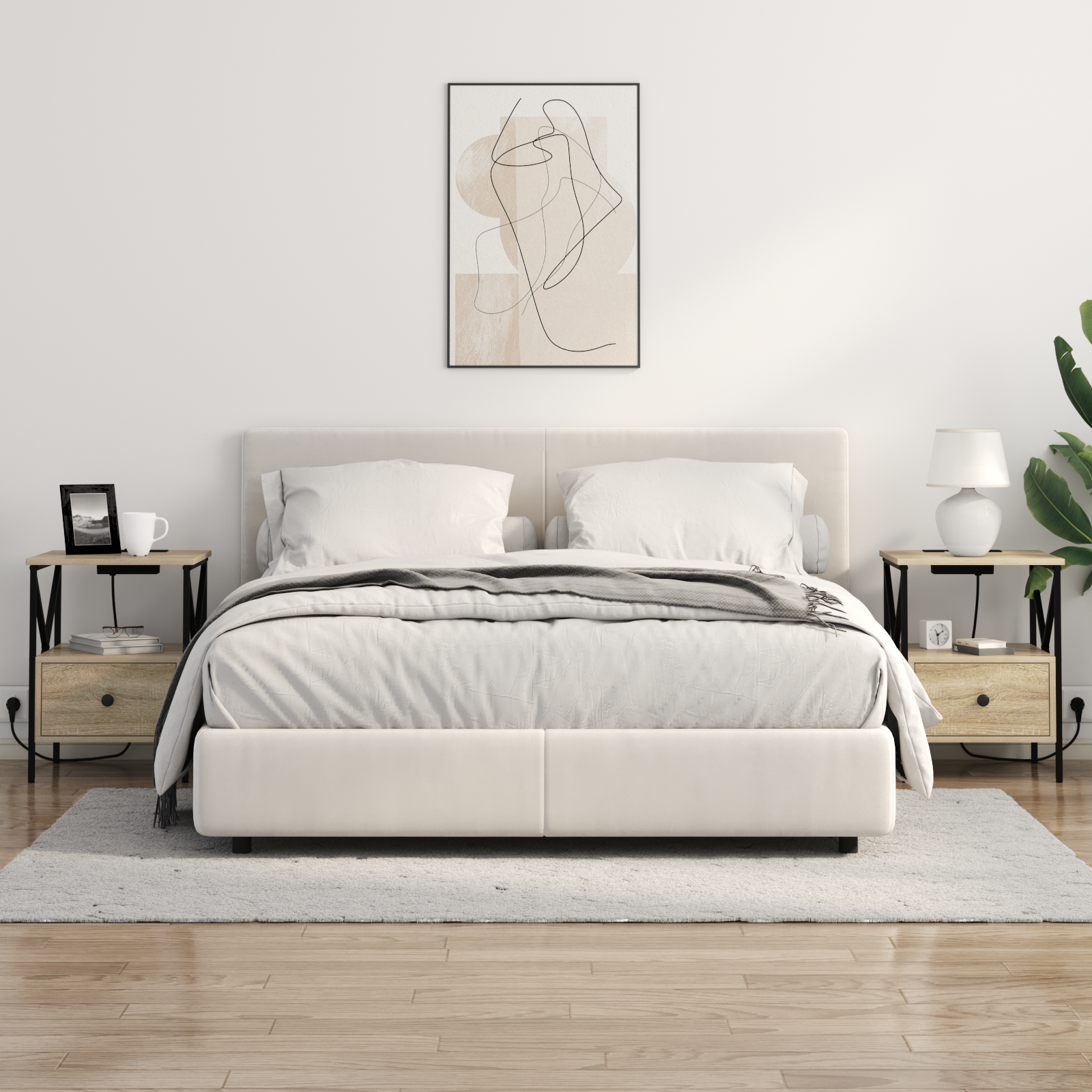 • Funkční úložné zásuvky Tradiční zásuvky s elegantními knoflíky poskytují dostatek místa na noční nezbytnosti a pomáhají udržovat prostor uklizený.
