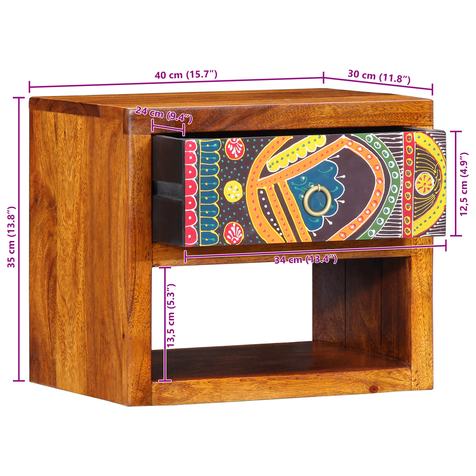 Tento moderní nástěnný noční stolek je fajn kombinací rustikálního kouzla a funkčního designu. Je ideální jak pro moderní, tak tradiční domovy a skvěle zapadne do vaší ložnice. Hnědá barva mu dodává teplý akcent, takže je to příjemný a stylový doplněk. Jeho nástěnný design šetří prostor a vytváří atraktivní místo vedle postele. Je vyrobený z kvalitního akáciového dřeva, takže je silný a ladí s rustikálním stylem.