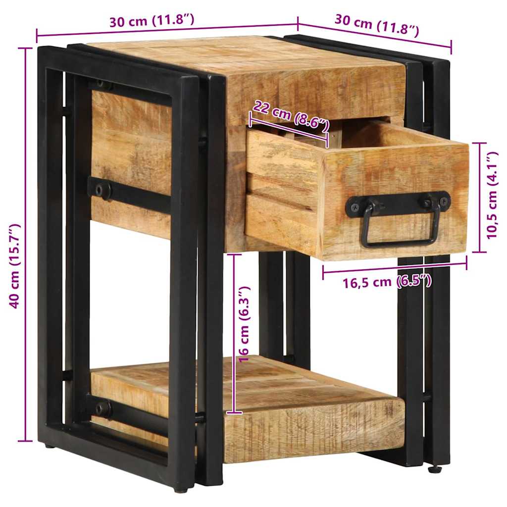 Dřevěný noční stolek dává rustikální šmrnc a je super kombinací stylu a funkčnosti pro každou ložnici. Jeho jednoduchý, ale pevný design doplňuje přírodní vzhled a dodává teplo a pohodlí. Ideální k odložení osobních věcí, lampy nebo budíku, tenhle stolek je praktickej a stylovej díky prostorným zásuvkám a poctivýmu zpracování.
