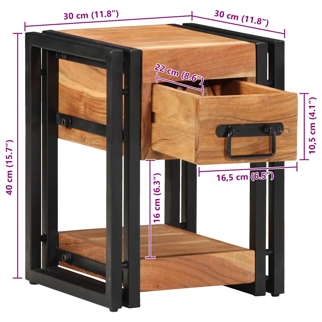 Dřevěný noční stolek dává rustikální šmrnc a je super kombinací stylu a funkčnosti pro každou ložnici. Jeho jednoduchý, ale pevný design doplňuje přírodní vzhled a dodává teplo a pohodlí. Ideální k odložení osobních věcí, lampy nebo budíku, tenhle stolek je praktickej a stylovej díky prostorným zásuvkám a poctivýmu zpracování.