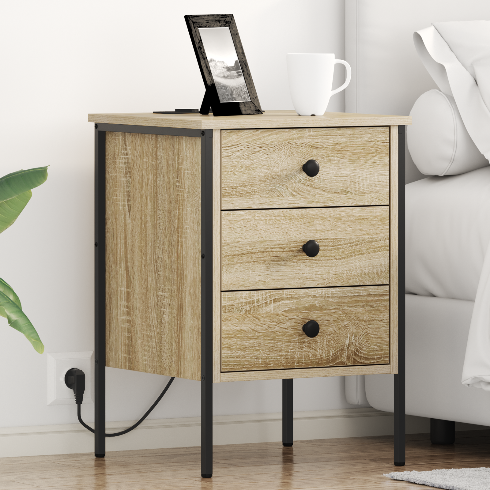 Tenhle rustikální noční stolek přidá do vaší ložnice špetku rustikální krásy. Jeho promyšlený a praktický design je ideální pro ty, kteří chtějí mít v osobním prostoru pořádek. S rustikálním kouzlem oslovuje každého, kdo ocení přírodní estetiku a moderní funkčnost. Je navržen jako skvělý společník na noc a hodí se k různým dekorativním stylům, od rustikálního po moderní.