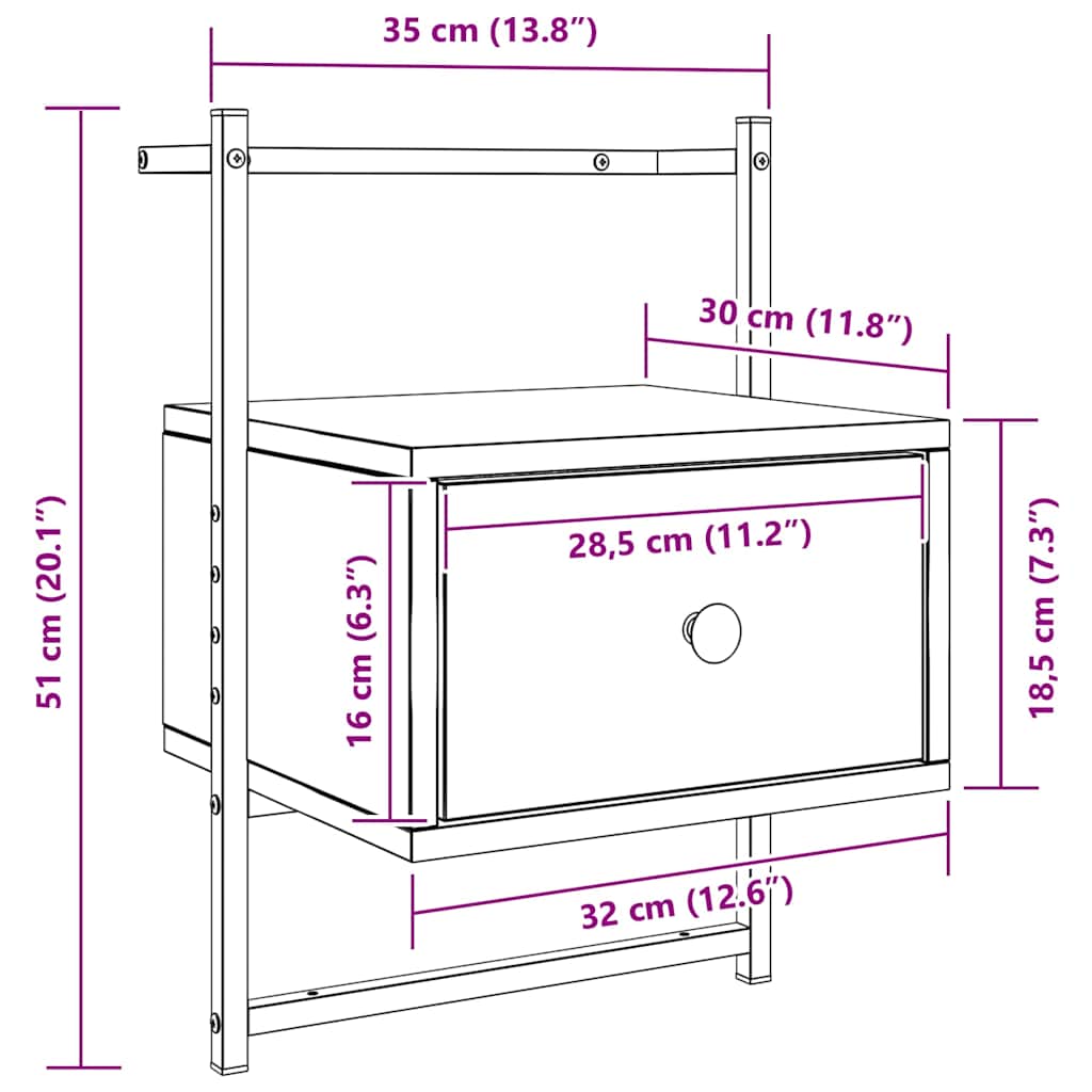Noční stolky nástěnné 2 ks dub sonoma 35 x 30 x 51 cm kompozit