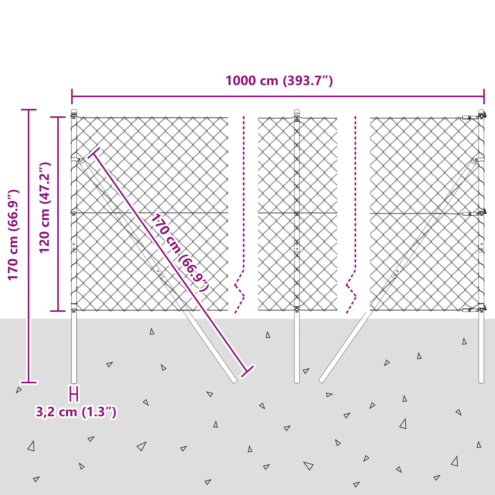 • Celkové rozměry: 1000 x 3,2 x 120 cm (D x Š x V)
