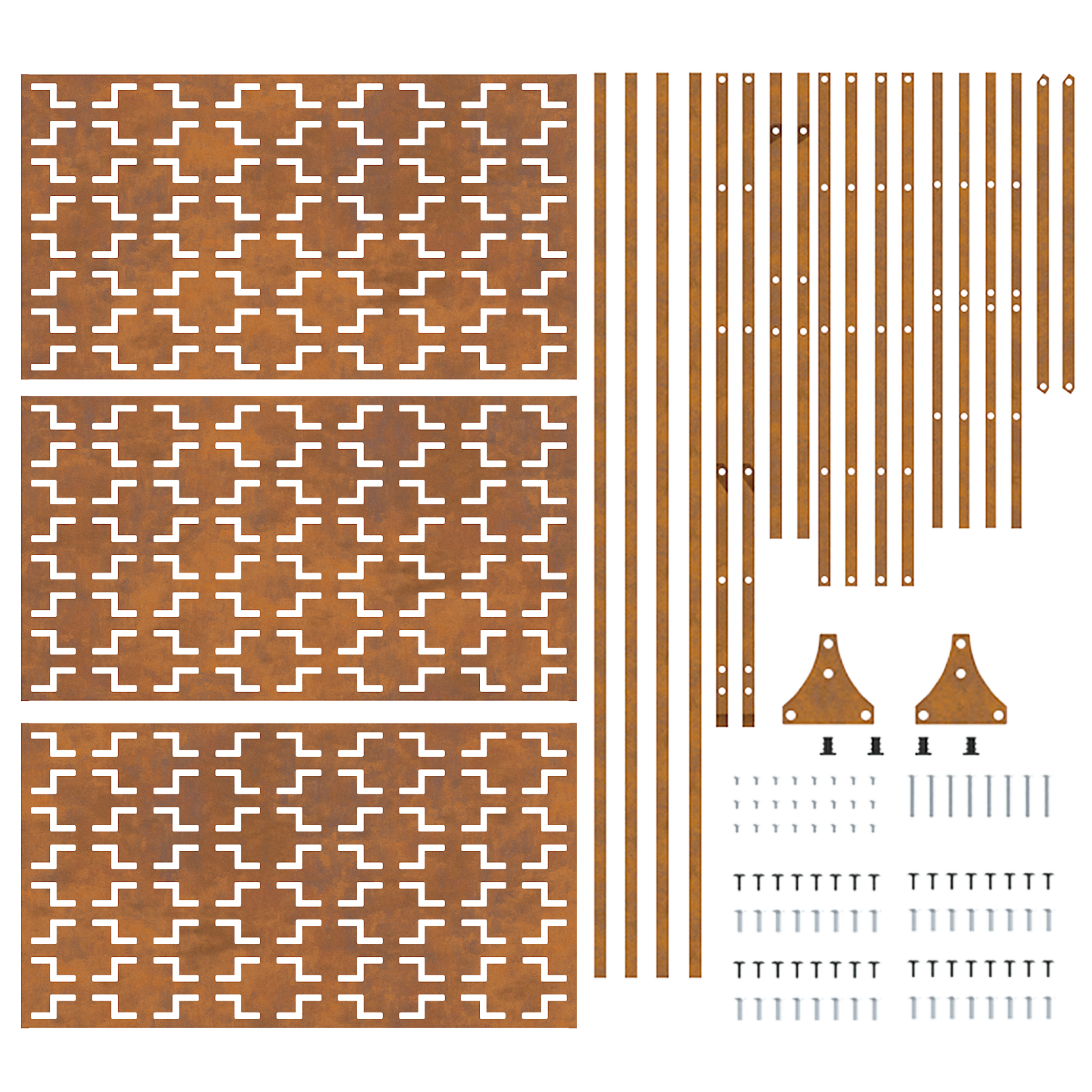 Tato zahradní clona nabízí moderní a stylové řešení pro venkovní soukromí. Její obdélníkový tvar a elegantní linie ji činí perfektním doplňkem do zahrad a na terasy. Díky své robustní konstrukci chrání vaše venkovní prostory před zvědavými pohledy a větrem, a dodává klidnou atmosféru pro relaxaci nebo zábavu s přáteli.