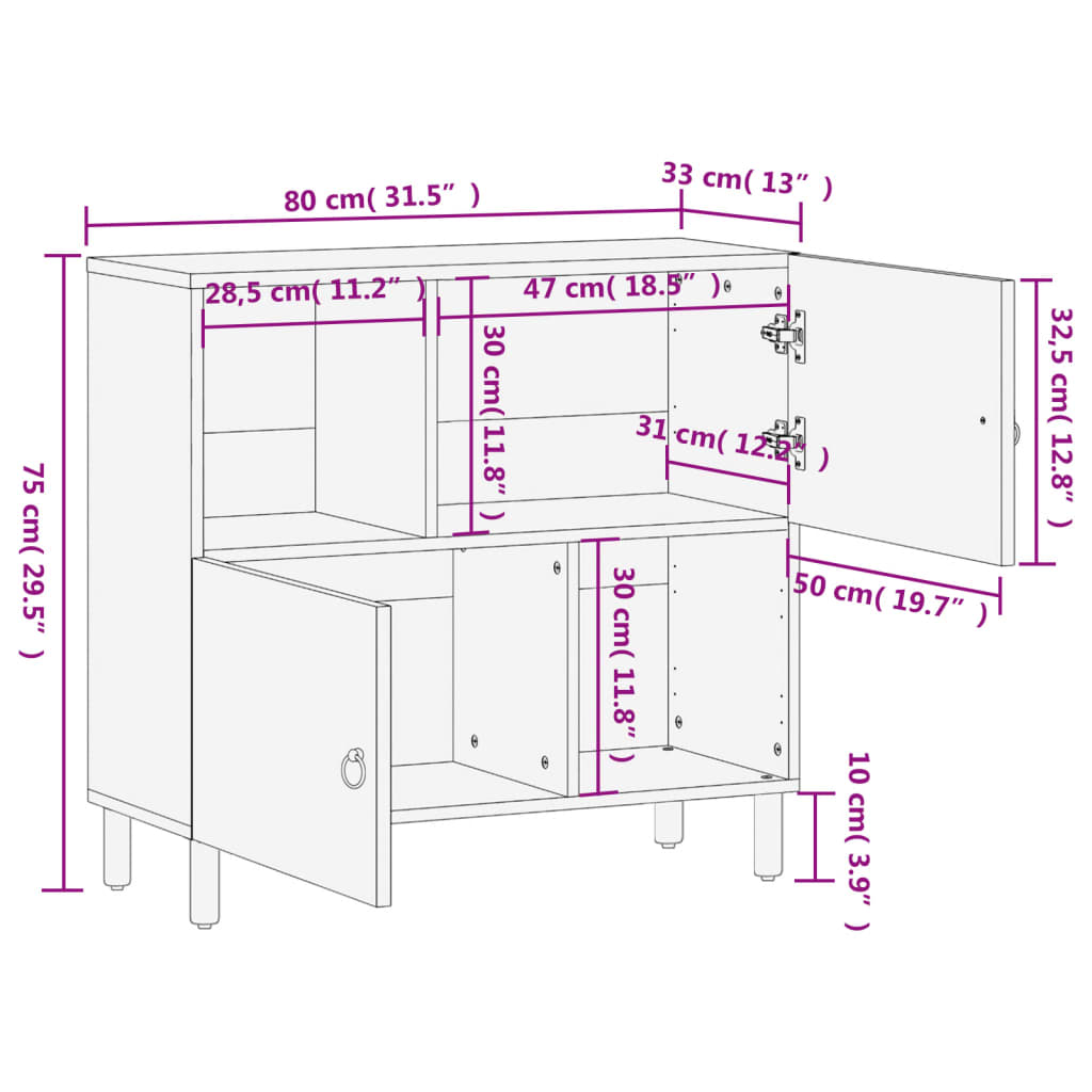 Odkládací skříňka 80 x 33 x 75 cm masivní mangovníkové dřevo