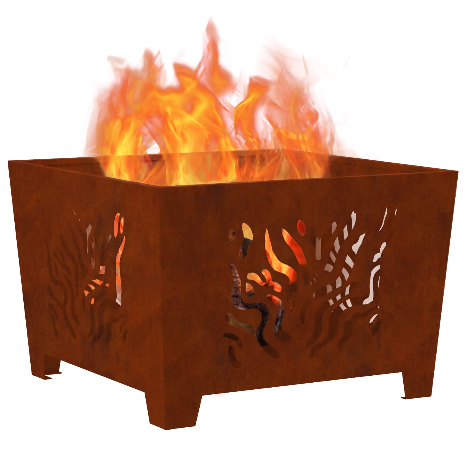 Toto moderní čtvercové venkovní ohniště dodá příjemnou atmosféru na váš balkon nebo terasu. Je vyrobené z odolné, tepelně rezistentní oceli a jeho elegantní design spojuje praktické funkce s moderním vzhledem. Skvělá volba na venkovní odpočinek a teplo.