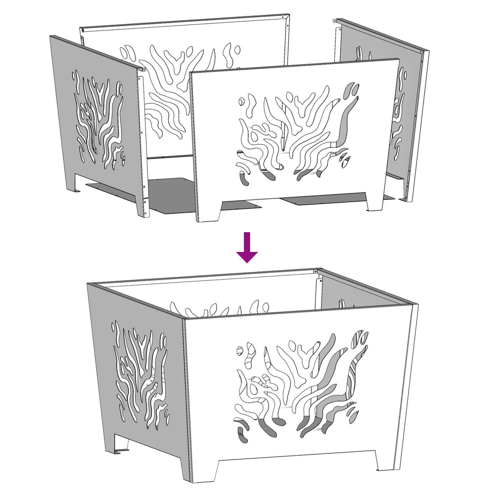 Toto moderní čtvercové venkovní ohniště dodá příjemnou atmosféru na váš balkon nebo terasu. Je vyrobené z odolné, tepelně rezistentní oceli a jeho elegantní design spojuje praktické funkce s moderním vzhledem. Skvělá volba na venkovní odpočinek a teplo.