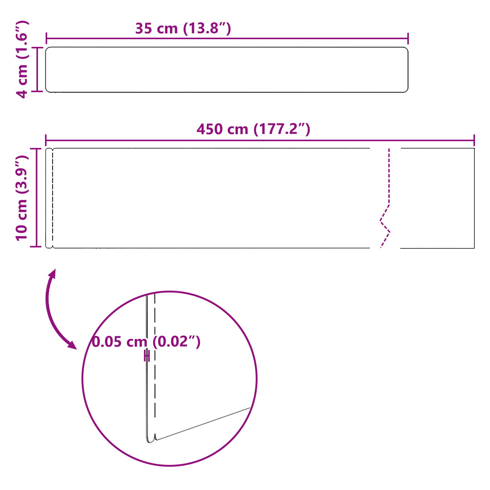• Celkové rozměry: 450 x 0,05 x 10 cm (D x Š x V)