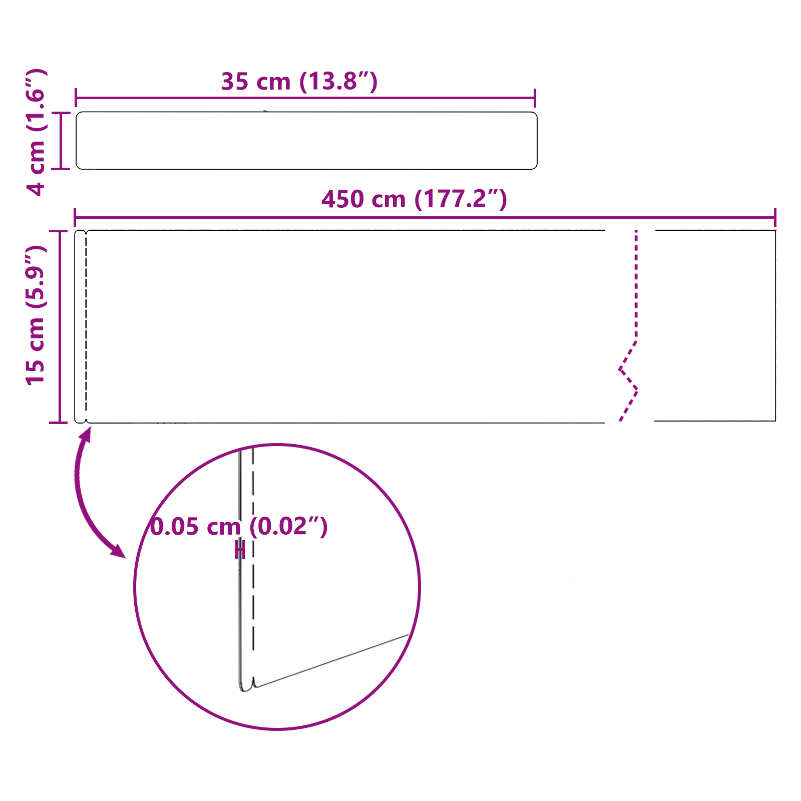 • Celkové rozměry: 450 x 0,05 x 15 cm (D x Š x V)