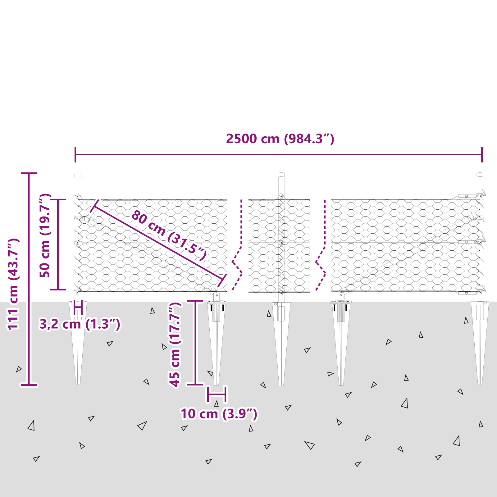 Plotový sloupek. Šedá 25 x 0,5 m (36 mm síť) Ocel