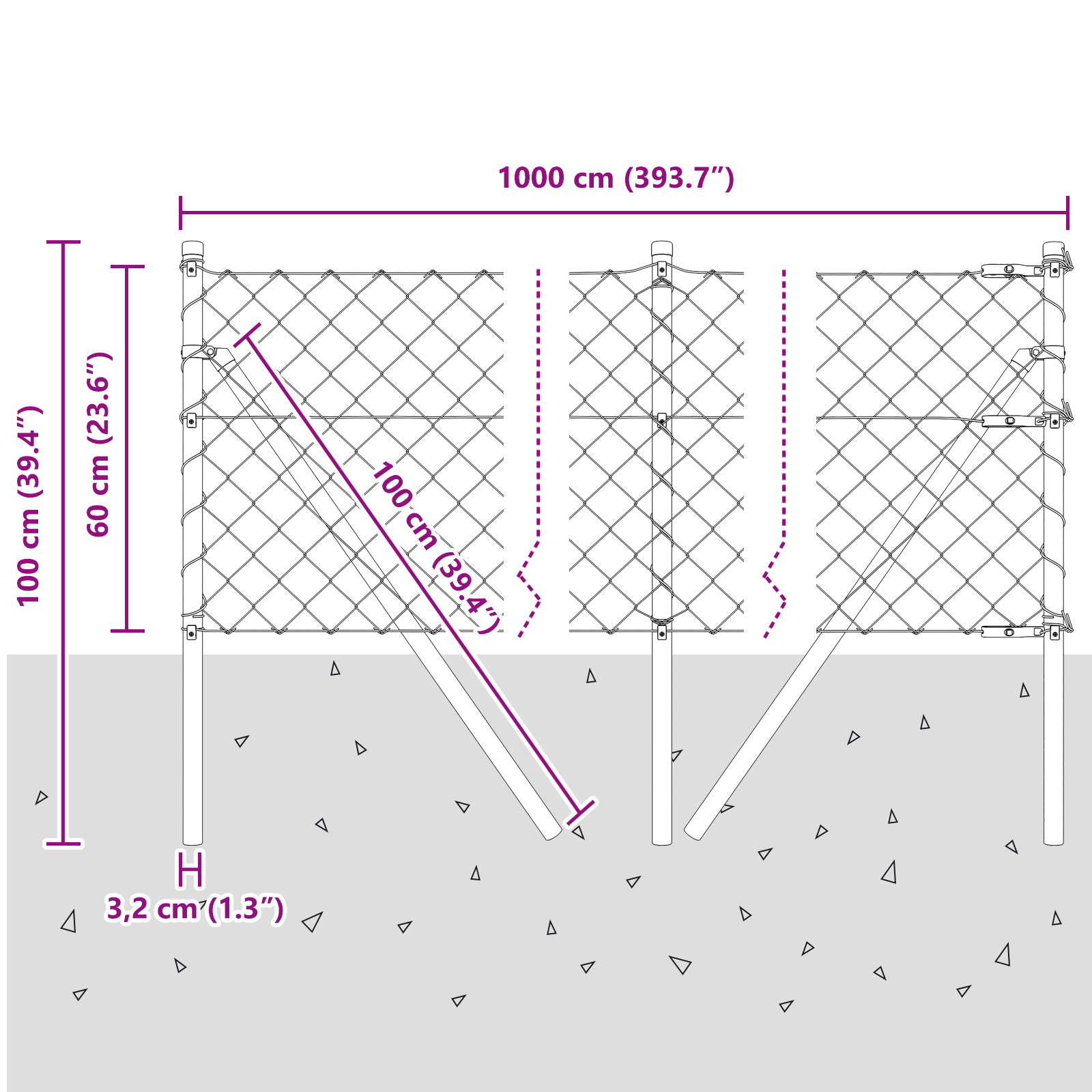 Plotový sloupek. Šedá 10 x 0,6 m (60 x 60 mm síťovina)