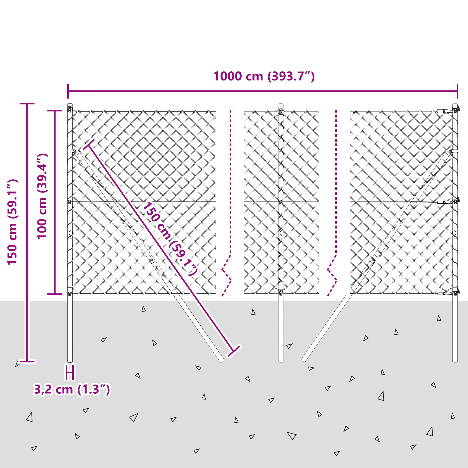 • Celkové rozměry: 1000 x 3,2 x 100 cm (D x Š x V)