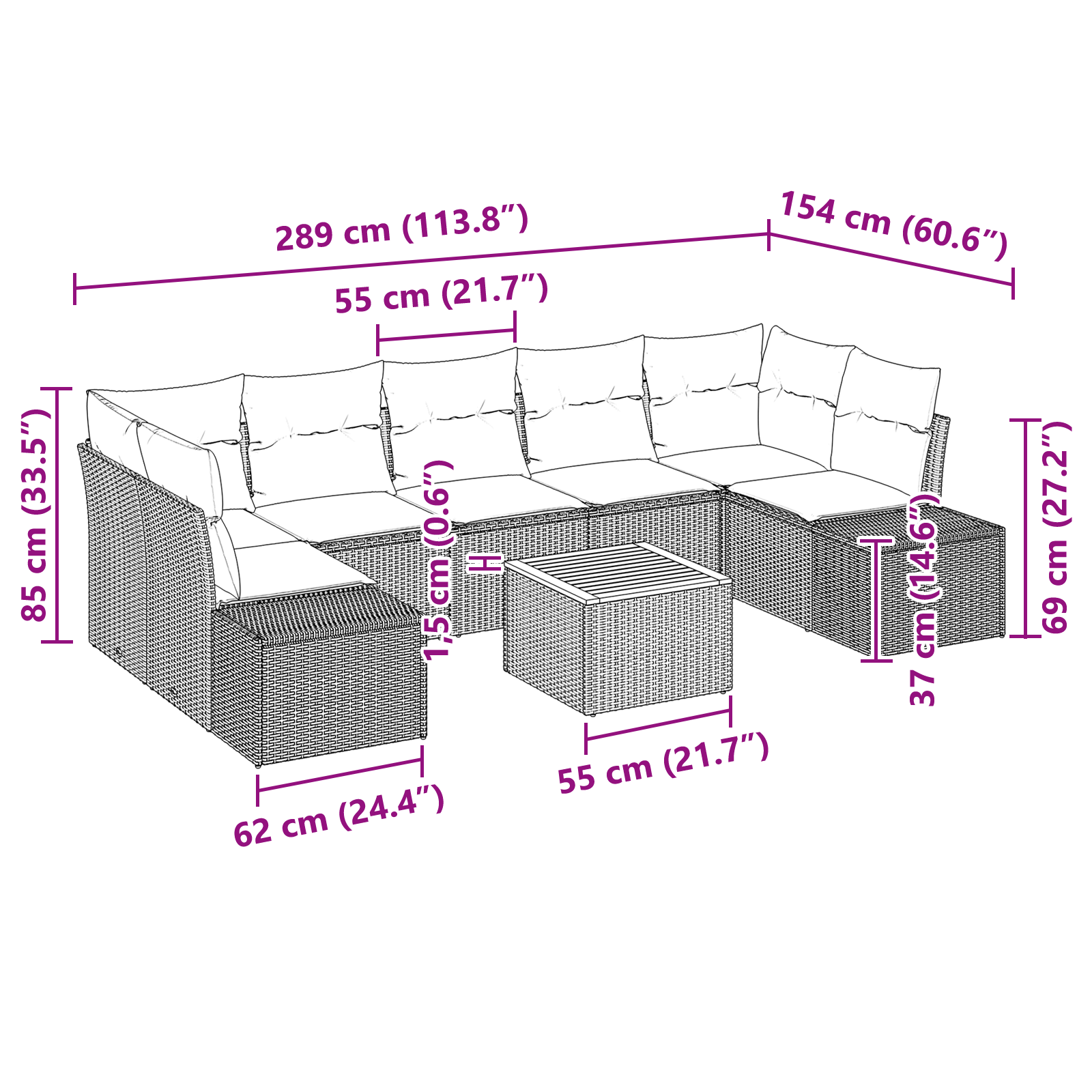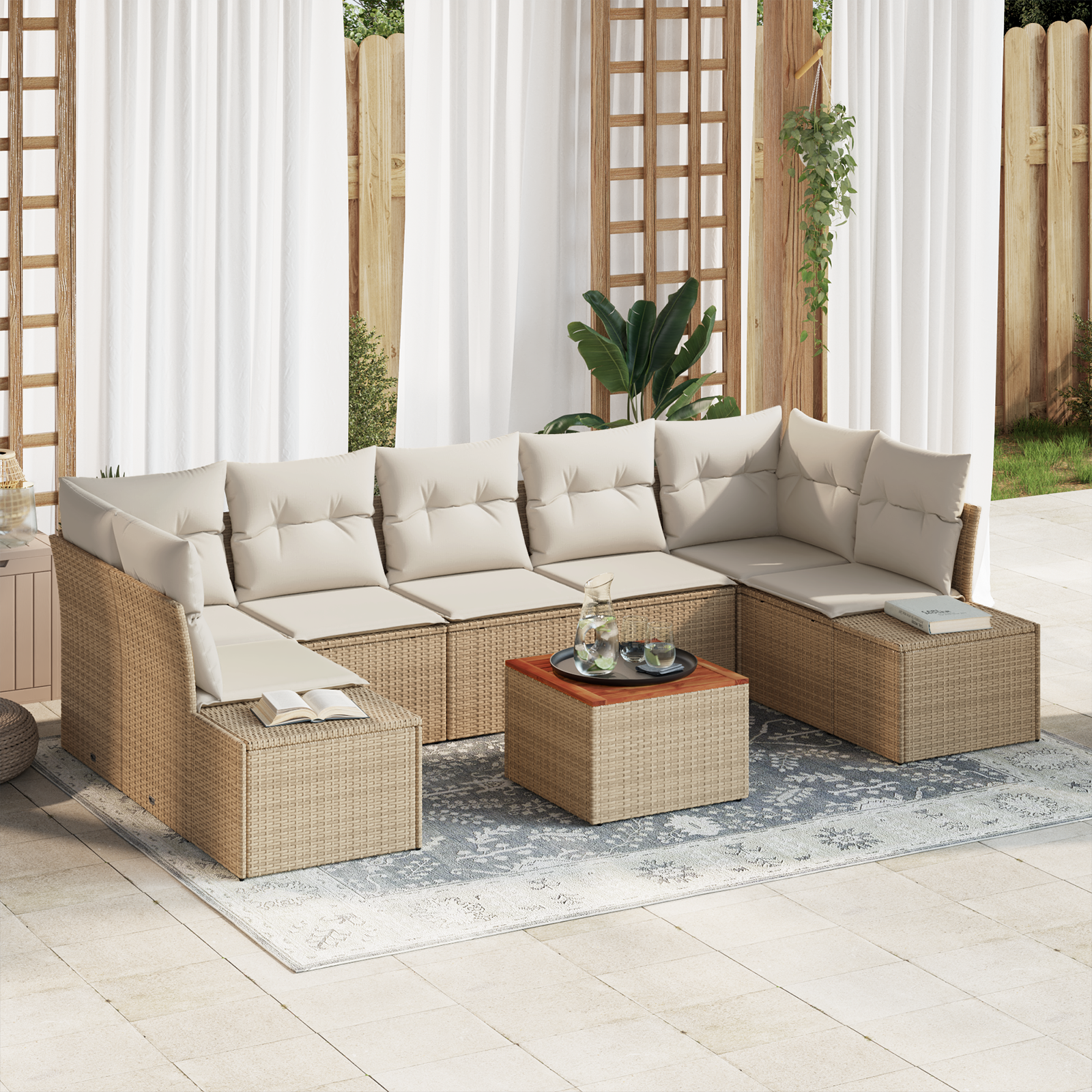 Sada zahradních pohovek s polštářem 8 pcs Béžová polyratan